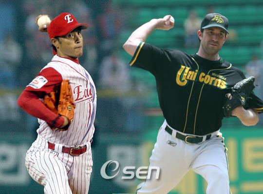"4차전에서 끝내겠다"(한화 송진우), "수원까지 끌고 가겠다"(현대 캘러웨이). 플레이오프 운명의 4차전은 이들 두 투수의 대결로 펼쳐지게 됐다. 한화가 이기면 대망의 한국시리즈 무대를 밟게 된다. 반면 현대가 승리를 거두면서 승부는 5차전(수원구장)까지 이어진다. 두 팀이 서로 질 수 없는 경기이다. 한화 송진우(40)는 통산 201승을 거둔 베테랑이다. 이번 플레이오프에서 첫 등판이다. 지난 준플레이오프에서 3차전 선발투수로 나와 역대 포스트시즌 최고령 승리투수를 눈 앞에 두고 5회 강판당했다. 따라서 이번 등판은 팀의 한국시리즈행과 자신의 최고령 승리 등 두 토끼를 사냥할 기회다. 그러나 올해 현대를 상대로 재미를 못봤다. 5경기에 선발 등판해 승리 없이 3패를 당했다. 그러나 평균자책점은 3.62로 그리 나쁘지 않았다. 타선지원을 받지 못한 탓이었다. 현대 타자들이 송진우의 노련한 피칭에 말려든다면 승산이 있다. 그러나 포스트시즌에서는 스트라이크존이 좁은 만큼 송진우의 바깥쪽 체인지업이 볼 판정을 받게 된다면 거꾸로 송진우가 부진할 수도 있다. 캘러웨이(31)는 2승 1패, 평균자책점 1.50을 마크하고 있다. 1차전에 선발 등판해 5이닝 6피안타 3실점으로 승리투수가 됐다. 현대에서는 가장 믿고 내보내는 투수이다. 만일 3차전을 잡았다면 5차전 또는 한국시리즈 1차전용 선발 카드였으나 김재박 감독은 벼랑 끝에 몰리자 어쩔 수 없이 캘러웨이를 내세웠다. 캘러웨이는 컷패스트볼, 패스트볼, 슬라이더, 체인지업 등을 자유자재로 던진다. 지면 끝장이기 때문에 혼신의 역투가 예상된다. 다만 불붙은 한화의 홈런포와 좁은 대전구장의 압박감을 이겨내야 되는 숙제가 있다. 캘러웨이의 어깨에 현대의 2006시즌 운명이 달려있다. sunny@osen.co.kr