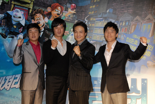 영화 ‘두사부일체’와 속편 ‘투사부일체’에서 호흡을 맞췄던 정준호 정웅인 정운택(이하 정트리오)과 김상중이 영화가 끝난 후에도 끈끈한 우정을 유지하고 있다. 2편의 영화에서 호흡을 맞춘 것이 주된 이유겠지만 이들의 우정은 생각하는 것 이상이었다. 정트리오와 김상중은 11월에 개봉하는 애니메이션 ‘플러쉬’ 더빙에 참가했다. 이들이 목소리 연기에 도전하게 된 가장 큰 이유는 멤버들이 함께 하기로 했기 때문이다. 10월 24일 가진 인터뷰에서 김상중이 “‘투사부’팀이 다 함께 한다고 해서 선뜻 나서게 됐다”고 먼저 말문을 열었다. 김상중에 말에 정트리오도 적극 호응했다. 이들은 또 하나같이 입을 모아 “만약에 혼자 제의를 받았다면 하지 않았을 것이다”며 영화로 만났지만 우정의 강도는 단단해 보였다. 하지만 이번 목소리 연기는 서로 얼굴을 보면서 호흡을 맞추지 못한 게 한가지 아쉬움이라면 아쉬움이다. 모두 함께 모여서 더빙을 했다면 더 재미있는 작업이 됐을 것이라는 것이 이들의 생각이다. 또 ‘훗날 다 함께 모일 기회가 있느냐?’고 영화의 동반출연 여부를 살짝 돌려서 묻자 정운택은 단번에 “네”라고 대답해 호기심을 자극했다. 하지만 이들이 모일 계획은 영화가 아니라 최근 새신랑이 된 정웅인의 집들이 때문이었다. 대신 이들은 “기회가 된다면 함께 출연해도 쉽게 뭉칠 것 같다”며 이번 목소리 연기가 ‘팀워크를 다지는 전초전’이라는 말로 기대감을 갖게 했다. 정트리오와 김상중은 영화 속과는 사뭇 다른 모습으로 그렇게 진한 우정을 나누고 있었다. ‘투사부일체’ 주연배우들이 목소리로 호흡을 맞춘 애니메이션 ‘플러쉬’는 럭셔리 쥐 로디(정준호 분)가 조폭개구리들의 암흑세계에 빠져 벌이는 익사이팅 프로젝트다. 11월 23일 국내 개봉. pharos@osen.co.kr