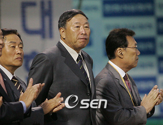 2006 프로야구 한국시리즈 3차전이 열린 25일. 아직 햇살이 설핏 남아 그라운드에 머물러 있던 대전구장. 경기 시작(오후 6시)을 한 시간 남짓 앞둔 시각, 삼성 라이온즈 김응룡 사장(66)이 원정임원실에 앉아 설탕이나 프림을 타지 않은 밍밍한 커피 한 잔을 여유롭게 마시고 있었다. 미리 켜둔 TV의 골프 프로그램에 가끔 눈길을 주면서. 김 사장은 “수술(올해 2월 대장 물혹 제거)을 한 다음부터 자극적인 커피나 술을 마시지 않는다. 수술 직후 92㎏으로 줄었던 몸무게가 요즘 다시 불어나서 100㎏을 넘었다”면서 말문을 열었다. 한국프로야구 사상 최다인 10차례 우승(해태 9번, 삼성 1번)의 위업을 일궈냈던 김 사장이 지휘봉을 놓고 구단 경영자로 탈바꿈한 지 이제 2년째. 큰 승부를 숱하게 경험했던 김 사장은 “아직도 (감독으로) 착각할 때가 있다. 투수를 교체하거나 번트나 히트앤드런, 스틸이 나오는 장면에서 특히 그렇다”면서 “작년까지는 그런 착각을 자주했는데 올해는 좀 무뎌졌다”며 가벼운 웃음을 머금어 보였다. 김 사장은 대구구장 시설, 현대 유니콘스의 연고지 확정 문제, 용병 확대 등 한국 프로야구가 안고 있는 민감한 현안에 대해 조심스레 자신의 견해를 밝혔다. 삼성의 홈구장인 대구구장 시설이 너무 낙후, 시설 개선의 여론이 비등하고 있는데 대해 김 사장은 “대구시가 돔구장 건립을 생각하고 있는 것 같다”면서 구장 신축이 될 수 있을 것으로 관측했다. 구장 시설에 대해 누구보다도 뼈저리게 개선의 필요성을 절감하고 있을 그는 “신상우 총재가 돔구장 신축과 현대의 연고지 문제를 해결할 것이다. 그 때문에 그 분을 모셔온 것이 아니냐”며 반문했다. 용병 문제는 한국시리즈가 끝나면 당장 한국야구위원회(KBO)와 8개 구단, 한국프로야구선수협회(이하 선수협)가 머리를 맞대고 풀어야할 숙제. 대부분의 구단들은 용병 확대를 원하지만 선수협이 완강하게 반대 의사를 고수하고 있어 해결이 쉽지 않은 상황이다. 그와 관련, 김 사장은 “현대는 관중 300명, 500명을 놓고 경기를 하고, 대구구장 관중도 평균 7000명이었던 작년에 비해 줄어들어 4000명이었다. 우리 프로야구가 죽느냐 사느냐하는 마당에 대승적인 차원에서 선수협도 용병확대를 받아줘야할 텐데. 그 대신 FA 연한을 일년 줄여주겠다고 하는데도 안 받아들이니…”라며 고개를 흔들었다. 용병 확대론은 김 사장의 지론. 용병을 확대해 프로야구를 보다 재미있게 이끌어야 관중들을 불러모을 수 있다는 게 김 사장의 주장이다. 김 사장은 최근 김성근 전 LG 감독이 SK 와이번스 사령탑에 앉는 등 그라운드 지휘자의 복고 흐름에 대해 “(김)성근이는 하고 싶어하더구만. 나야 지금 편하고 좋은데 뭘”이라며 웃음으로 얼버무렸다. chuam@osen.co.kr 김응룡 삼성 라이온즈 사장이 2006 프로야구 한국시리즈 3차전 식전행사에 참석한 모습.