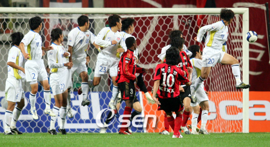 박주영이 서울을 구해냈다. 지난 전남과의 후기 10라운드에서 3개월만에 골을 기록하며 부활의 조짐을 알렸던 박주영은 25일 서울 월드컵 경기장에서 벌어진 성남 일화와의 후기 11라운드 경기에서 후반 44분 동점을 이끌어내는 멋진 프리킥골로 서울에게 승점 1점을 안겨주었다. 히카르도가 경고 누적으로 인해 결장한 서울은 한동원으로 하여금 공격을 하게 했다. 한동원을 축으로 한 중앙 미드필더는 고명진과 한태유 등 젊은 미드필더를 구성했다. 이에 대항하는 원정팀 성남은 이따마르를 원톱에 놓고 네아가와 남기일이 각각 좌우 미드필더로 나섰다. 또한 김두현에게 공격을 풀어나가는 역할을 맡기고 손대호와 김철호가 수비형 미드필더를 서는 4-2-3-1 포메이션으로 나섰다. 전반은 성남이 지배한 경기였다. 성남은 서울의 왼쪽을 집중공략했다. 또한 중앙 미드필더들도 서울의 어린 미드필더들을 적극공략해 경기의 주도권을 잡았다. 전반 10분 네아가의 슈팅이 김병지의 선방에 막혔고 1분 후 김두현의 중거리슈팅이 살짝 빗나갔다. 서울로서는 성남의 공세에 대응하면서 공격을 풀어나가려 했지만 히칼도의 공백을 뼈저리게 느끼면서 제대로된 공격을 하지 못했다. 결국 전반 25분 이따마르의 선제골이 터졌다. 장학영이 미드필드 지역 왼쪽 사이드 라인에서 올려준 공을 이따마르가 멋진 헤딩슛으로 마무리 한 것. 선제골로 기세가 오른 성남은 4분 후 추가골을 기록했다. 다시 서울의 왼쪽을 파고든 성남은 남기일이 크로스를 올렸다. 이 크로스를 서울의 수비수가 걷어냈으나 멀리가지 못하고 2선에서 쇄도하던 김두현의 오른발에 걸린 것이었다. 이후 서울은 이기형을 빼고 안태은을 투입하며 만회골을 노렸지만 성남의 막강한 수비에 걸려 그 뜻을 이루지 못했다. 후반 들어 반드시 승리해야 하는 이장수 감독은 수비형 미드필더 한태유를 빼고 박주영을 투입하며 공격에 힘을 실었다. 수비에서는 아디로 하여금 활발한 오버래핑을 통해 포백과 스리백을 적절히 혼용케 함으로 변화를 꾀했다. 즉 상황상황에 따라 서울은 4-3-3과 3-4-3을 넘나들며 공격을 강화한 것이다. 이에 성남은 남기일을 빼고 김영철을 헤우며 상대 공격을 막고 역습을 취하는 전술을 들고 나왔다. 서울은 계속 성남을 밀어붙였다. 후반 8분 김은중까지 투입하며 공격에 공격을 거듭한 서울은 마지막 패스가 좋지 않으면서 후반 17분 한동원의 왼발 발리슛을 제외하고는 이렇다할 찬스를 만들지 못했다. 오히려 후반 14분과 18분 성남의 역습에 이은 네아가와 이따마르에게 좋은 찬스를 내주기도 했다. 하지만 후반 들어 공점유율에서 크게 앞선 서울은 결국 한 골을 따라잡았다. 후반 28분 한동원이 페널티 에어리어 오른쪽 코너 부근에서 올린 크로스를 김은중이 멋진 헤딩슛으로 연결한 것. 이후 흥이 오른 서울 서포터의 열광적인 응원을 등에 업은 서울은 성남을 계속 밀어붙였다. 후반 37분 박주영의 터닝슛이 성남 수비수의 발에 걸렸으며 계속되던 공격에서도 성남 수비수들에게 막혔다. 서울의 패색이 짙어가던 후반 44분 성남의 조병국이 파울을 범했고 후반 교체되어 들어간 박주영이 아크서클 정면에서 멋진 오른발 프리킥골을 성공시켜 극적인 2-2 동점을 이루었다. 박주영으로서는 2경기 연속골이자 부활을 알리는 자축포. 결국 경기는 2-2 양 팀의 무승부로 끝났고 서울은 승점 1점을 추가해 인천과 대구를 제치고 플레이오프에 한발 더 앞서가게 되었다. bbadagun@osen.co.kr 박주영이 프리킥으로 동점골을 성공시키고 있다./상암=박영태 기자 ds3fan@osen.co.kr
