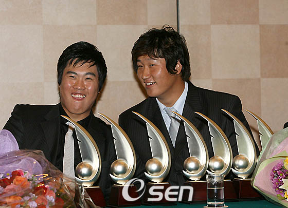 아쉽지만 다음을 기약했다. 그래도 타격 4관왕에 오른 것과 35표씩이나 받은 것에 만족해했다. 22년만에 타격 부문 트리플 크라운을 달성, 강력한 MVP 후보에 올랐으나 2일 서울 플라지 호텔에서 열린 MVP 투표에서 2등에 그친 롯데 거포 이대호는 “앞으로 더 열심히 해서 다음에는 꼭 MVP에 오르겠다. 내년에는 한국시리즈 MVP를 받도록 노력하겠다”며 아쉬움을 곱씹었다. 이대호는 한화 신인 류현진과 접전을 벌였으나 12표차이로 아깝게 2위에 머물렀다. 다음은 이대호와의 일문일답. -아깝게 MVP를 놓쳤는데. ▲괜찮아요. 4개나 받았는데요 뭐. (류)현진이가 잘해서 받은 것으로 생각합니다. 나중에 더 좋은 성적을 갖고 받으면 더 좋은 거 아니겠습니까. 야구할 날이 많으니까 앞으로 받도록 노력하겠습니다. -어느 정도 득표를 예상했나. ▲35표는 생각보다 많이 나왔다. 기자분들이 올해 저를 잘봐주신 것 같다. 어려운 환경에서 이정도 표를 받아 만족한다. 선배로서 류현진에게 축하할 일이다. 고생한 프런트에게 미안할 따름이다. -내년에 MVP를 노려보겠나. ▲내년에는 정규시즌 MVP보다 한국시리즈 MVP를 받고 싶다. 한 번도 포스트시즌에 나가보지 못했는데 포스트시즌에 진출해서 꼭 뛰고 싶다. 올해 4관왕을 차지한 것은 팀동료와 코칭스태프의 도움 덕분이다. 내년에는 MVP를 받고 당당하게 인터뷰를 하고 싶다. -류현진이 이대호 선수에 대해 '큰 1루수'가 될 것이라고 했는데. ▲좋게 평가해준 것에 고맙게 생각한다. 현진이는 좋은 성적에 비해 변함없는 모습을 보여줘서 좋다. 앞으로도 잘할 것으로 본다. sun@osen.co.kr 류현진과 이대호가 시상식 후 이야기를 나누고 있다./프라자호텔=김영민 기자ajyoung@osen.co.kr