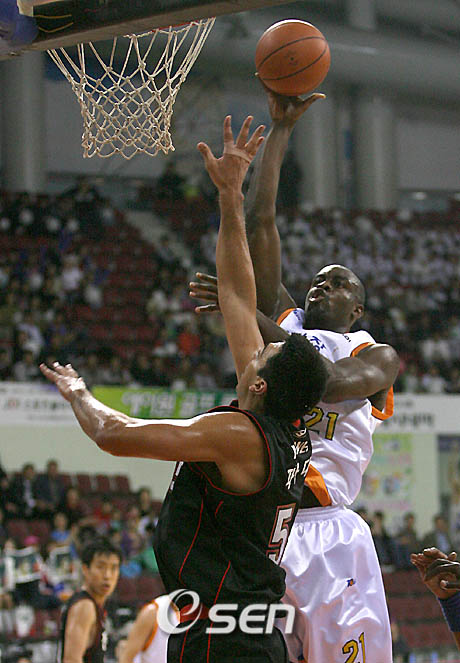 "이젠 웨슬리 윌슨을 바꿔야죠". 안양 KT&G의 김동광 감독이 윌슨을 대체할 용병을 찾고 있다며 퇴출 수순을 밟고 있음을 분명히 했다. 김 감독은 3일 안양실내체육관에서 열린 인천 전자랜드와의 2006~2007 현대 모비스 프로농구 정규리그 홈경기에서 77-86으로 무릎을 꿇은 뒤 가진 인터뷰에서 "모두 봤겠지만 윌슨이 오늘 해준 것이 하나도 없다"며 "단테 존스와 호흡이 맞지 않는 만큼 더이상 윌슨에게 기회를 주기 어렵다. 이젠 바꿔야 한다"고 말했다. 이어 김 감독은 "대체 용병을 찾고 있지만 마땅한 선수가 없는 것도 사실이기 때문에 윌슨은 당분간 계속 기용될 것"이라며 "오늘 경기의 패인은 결국 윌슨이 구멍이었고 포스트에서 제대로 되지 않았기 때문"이라고 덧붙여 윌슨에게 더이상 희망이 없음을 시사했다. 김 감독은 경기 전 기자들과 만난 자리에서도 "윌슨이 그동안 했던 습관 때문에 훈련때 했던 연습이 모두 무용지물이 된다"며 "국내 선수들에게 득점 기회를 제공하기 위해 존스와 함께 스크린을 걸어주며 움직여줘야 하는데 전혀 그렇지 못하다"고 밝혀 불만을 넌지시 내비치기도 했다. 그러나 김 감독은 패배에도 불구하고 '희망'을 본 경기였다고 자평했다. 그동안 존스에게만 의존되던 공격력이 김일두 양희승 등에게 골고루 돌아간 것에 대해 김 감독은 "김일두가 득점에 가세해준 덕분에 좋은 경기를 치렀다. 졌지만 경기 내용 자체는 그리 나쁘지 않았다"며 "특히 김일두가 자신에게 주어진 기회를 확실히 잡았다. 앞으로 자주 기용될 것"이라고 전했다. 또 김 감독은 "(주)희정이도 득점에 가세해주면 좋은데 슛에 자신이 없는지 기회가 와도 볼을 돌리곤 한다"고 말해 좀더 적극적인 공격이 이루어져야 한다는 주문을 하기도 했다. tankpark@osen.co.kr 3일 경기서 윌슨이 골밑슛을 쏘고 있다./안양=김영민 기자 ajyoung@osen.co.kr