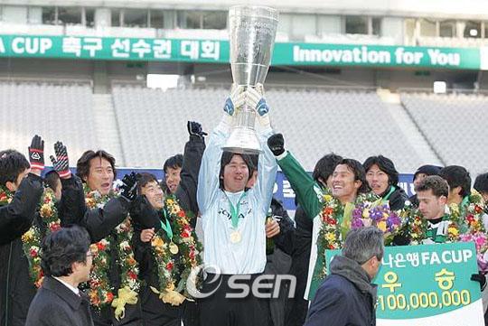 전북 현대의 2006 아시아축구연맹(AFC) 챔피언스리그 정상 등극은 그야말로 1년 여에 걸친 '한 편의 드라마'였다. 전북은 AFC 챔피언스리그에 오르기까지 그야말로 역전에 역전을 거듭했다. 전북의 역전 드라마는 AFC 챔피언스리그가 아니라 2005 하나은행 FA컵까지 거슬러 올라간다. 지난해 11월 2일 충남 논산공설운동장에서 열렸던 FC 서울과의 16강전에서 전북은 정종관이 후반 14분 선제골을 터뜨렸지만 18분 정조국에게 페널티킥 동점골을 허용하고 말았다. 이후 전북은 박주영 정조국의 잇따른 슈팅을 골키퍼 이광석의 선방으로 잘 막아내며 위기를 넘긴 뒤 조진수 대신 교체 투입됐던 용병 밀톤이 네또의 어시스트를 받아 결승골을 터뜨리고 8강에 올랐다. 8강전에서 수원 삼성을 만난 전북은 전반 인저리타임에 김남일에게 선제골을 내주고도 후반 6분과 17분 밀톤과 조진수가 연속골을 터뜨려 승리를 눈 앞에 뒀지만 44분 이따마르에게 동점골을 허용한 뒤 연장 전반 4분에 김남일에게 재역전골을 내주며 패색이 짙었다. 그러나 밀톤이 전반 9분에 동점골을 터뜨렸고 승부차기에서 1, 2번 키커 마토와 김진우의 슈팅을 막아내 4강에 진출했다. 결국 전북은 4강전과 결승전에서 인천 한국철도와 울산 현대미포조선을 연파하고 FA컵 정상에 등극했다. FA컵 우승팀 자격으로 AFC 챔피언스리그에 진출했지만 전북은 2005 시즌 K리그 정규리그에서 4승 6무 14패로 승점 18밖에 따내지 못하며 최하위 광주 상무보다 겨우 승점 1 앞선 12위였고 조별리그에서 만나야 할 상대는 중국 리그와 일본 J리그를 제패한 다롄 스더와 감바 오사카였다. 그러나 전북은 조별리그부터 역전 드라마를 쓰기 시작했다. 홈경기 1차전에서 1-2로 뒤지다가 후반 26분과 40분 김형범의 연속골로 3-2로 극적인 승리를 따낸 전북은 2차전 원정경기에서 다롄에 0-1로 지는 패배의 쓰라림도 맛봤지만 이후 다낭(베트남)에 2연승을 거뒀다. 하지만 전북은 구단주인 정몽구 회장의 구속사태로 AFC 챔피언스리그를 포기하려고 했다. 하지만 득보다 실이 더 크다고 판단한 전북은 포기할 마음을 버리고 감바 오사카와의 원정경기를 1-1로 마무리지었고 결국 1, 2위를 가리는 마지막 경기에서 다롄 스더와 다시 만났다. 전북은 후반 13분 선제골을 내주며 0-1로 뒤졌지만 22분 김형범의 동점골, 36분 왕정현의 결승골에 이어 43분 김형범의 쐐기골로 3-1로 승리, 8강 진출 티켓을 따냈다. 토너먼트부터는 전북이 '역전의 명수'라는 것을 여실히 보여줬다. 상하이 선화(중국)와의 경기에서 1차전에서 0-1로 뒤진 뒤 2차전에서도 선제골을 내주며 끌려가고도 제칼로와 염기훈, 정종관의 연속골로 4-2로 승리, 4강에 올랐고 4강전에서는 '형제팀' 울산 현대와의 1차전에서 2-3으로 지고도 2차전에서 4-1로 승리하는 뒷심을 발휘하며 결승까지 올랐다. 결승에선 알 카라마(시리아)와 만난 전북은 1차전에서 2-0으로 이긴 뒤 2차전에서 2골을 연속해서 내주며 역전패 위기에 몰렸지만 제칼로가 후반 41분 쐐기골로 마침표를 찍으면서 우승컵을 들어올렸다. 결국 전북은 60만 달러(약 5억 8000만 원)의 우승 상금을 거머쥐며 다음달 일본에서 열리는 국제축구연맹(FIFA) 클럽 월드컵에 출전할 수 있는 자격도 획득, 최소한 100만 달러(약 9억 5000만 원)의 상금도 추가로 확보했다. 여기에 1차전에서 클럽 아메리카(멕시코)를 꺾으면 200만 달러(약 19억 원)의 상금을 확보하고 FC 바르셀로나(스페인)와 만나는 꿈의 대결도 가능하다. 한때 AFC 챔피언스리그 포기까지 생각했던 전북으로서는 그야말로 '고진감래(苦盡甘來)'가 아닐 수 없다. ■ 전북의 FIFA 클럽 월드컵 일정 12월 11일 / 도쿄, 오후 7시 20분 / 전북 현대 - 클럽 아메리카(멕시코) 12월 14일 / 요코하마, 오후 7시 20분 / 전북 현대 - FC 바르셀로나(스페인) * 11일 경기 이겼을 경우 12월 15일 / 도쿄, 오후 7시 20분 / 5~6위전 * 11일 경기 졌을 경우 12월 17일 / 요코하마, 오후 4시 20분 / 3~4위전 * 14일 경기 졌을 경우 12월 17일 / 요코하마, 오후 7시 20분 / 결승전 * 14일 경기 이겼을 경우 tankpark@osen.co.kr 지난해 FA컵 우승을 차지하고 환호하는 전북 선수단.