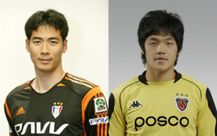 박호진(30, 수원)과 정성룡(21, 포항). K리그를 잘 보지 않는 축구팬들에게는 생소한 이름이겠지만 K리그 팬들에게 이들은 유명인사다. 바로 이들은 플레이오프 결전을 펼치는 수원과 포항의 주전 수문장이다. 하지만 단순히 양 팀의 주전 수문장이기 때문에 유명한 것만은 아니다. 지난 시즌까지만 하더라도 '이운재'와 '김병지'이라는 한국 최고의 수문장들에게 가려 빛을 보지 못했던 선수들이기 때문이다. 2006년 시즌 기나긴 후보의 멍에를 벗어버리고 주전으로 도약한 이들은 단판으로 벌어지는 플레이오프를 통해 한 단계 더 도약하려 한다. ▲ 이운재의 공백을 기회로 삼은 박호진 박호진에게 이운재는 큰 산이었다. 99년 수원에 입단한 박호진은 이운재와 김대환 등에게 밀리며 제대로 자리를 잡지 못했다. 그는 이운재가 대표팀에 차출될 때 백업 골키퍼 자리를 놓고 김대환과 경쟁을 펼쳤다. 2003년 군복무로 위해 광주로 둥지를 옮긴 박호진은 2004년 17경기를 뛰며 경험을 쌓았다. 전역 후 수원에 복귀한 그는 2005년 4경기 출전에 그치며 다시 벤치를 달구었다. 이같은 모습을 지켜본 전북의 최강희 감독은 그를 뛰게 하기 위해 시즌 전 영입 의사를 밝히기도 할 정도. 절치부심하던 박호진에게도 기회가 찾아왔다. 바로 월드컵 이후 이운재가 부상으로 제 컨디션을 찾지 못한 것. 이운재의 백업으로 하우젠컵 10경기에 출장한 박호진은 8골만을 내주며 차범근 감독의 신임을 얻기 시작했다. 이후 박호진은 자신감을 바탕으로 안정되 경기 운영을 보여주었고 특히 FA컵 8강전인 서울과의 경기 승부차기에서 강한 인상을 남겼다. 이에 차범근 감독도 "박호진의 좋은 분위기를 깨고 싶지 않다" 며 신뢰를 보였다. 이후 수원은 박호진의 선방 덕분에 후기리그 13경기에서 9실점만을 하는 짠물 수비를 보여주었다. ▲ 김병지 이적 이후 치열한 주전 경쟁을 이겨낸 정성룡 올 시즌이 시작되기 포항의 주전 골키퍼였던 김병지가 이적했다. 이에 포항은 새로운 골키퍼를 영입하기 위해 동분서주했지만 그 효과를 거두지는 못했다. 포항의 코칭스태프는 결국 김병지의 후계자를 기존 멤버 중에서 찾게 되었고 정성룡과 신화용이 치열한 경쟁을 펼쳤다. 처음 기회를 잡은 것은 신화용이었다. 개막전에 선발 출전한 신화용은 좋은 모습을 보여주며 앞서나갔다. 이후 9경기에 출장하며 앞서 나갔으나 대전전서 부상을 당한 이후 정성룡에게 기회가 왔다. 정성룡은 신체조건을 바탕으로 안정된 모습을 보이며 팀의 주전 자리를 꽤찼다. 청소년대표로 활약하면서도 3년간 프로 경기에는 나서지 못하며 광주 상무 입대까지 고려했던 그로서는 꿈에도 그리던 주전자리였다. 그는 경험 부족으로 인해 간간히 흔들리는 모습을 보여주기는 했지만 25경기에서 26실점을 기록하며 안정된 모습을 보였고 베어벡호에도 승선하는 기쁨을 누렸다. 올림픽대표팀에서 선발되는 등 앞으로의 밝은 미래를 예견하고 있다. ▲ 이제는 챔피언결정전이다 오랜 무명의 설움을 털어내고 플레이오프 무대에 선 두 골키퍼. 이 둘은 각각 서로를 넘어서 챔피언결정전으로 향할 것이라는 강한 각오를 드러내고 있다. 2년 전 양 팀을 대표하던 이운재와 김병지와의 팽팽한 대결을 다시 한 번 재현하겠다는 것. 정성룡은 경기를 앞두고 "컨디션은 좋다. 좋은 모습을 보여주어 팀을 꼭 챔피언결정전으로 이끌겠다" 며 말했다. 박호진 역시 지난 FA컵 준결승전에서 선방을 보여주며 좋은 컨디션을 유지하고 있음을 몸소 보여주었다. bbadagun@osen.co.kr 박호진-정성룡=수원-포항 홈페이지.