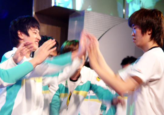 온게임넷 스파키즈가 후기리그 개막 6연승을 질주하던 르까프 오즈를 제압하고 2연승을 달렸다. 온게임넷은 12일 서울 용산 e스포츠 상설경기장에서 벌어진 '스카이 프로리그 2006' 후기리그 8주차 르까프전서 에이스 한동욱과 주진철-전태규 팀플조, '쌍동이' 박찬수의 활약으로 오영종 이제동이 버틴 르까프를 접전끝에 3-2로 물리쳤다. 선봉으로 나선 안상원이 오영종의 캐리어에 밀려 패배하며 불안한 출발을 했다. 그러나 두번째 세트서 '아티스트' 한동욱이 르까프의 신예 테란 박지수를 다수의 멀티 확보 후 8팩토리 물량과 드롭십을 활용한 공격으로 제압, 승부를 1-1 원점으로 돌렸다. 이어 팀플전서는 주진철-전태규조가 김성곤-손찬웅 조를 제압 2-1로 역전에 성공했다. 르까프도 쉽게 물러서지는 않았다. 후기리그에서 최고의 주가를 올리고 있는 다승 1위 이제동이 4세트에 출전, 한 걸음 앞선 확장으로 원종서의 확장을 막고 승리를 따내 승부를 2-2 원점으로 돌렸다 온게임넷은 승패의 향방이 걸린 5세트 에이스 결정전에서 팀의 비밀병기 박찬수를 출전시켰고 르까프는 이제동을 다시 내세웠다. 빠른 9드론 스포닝을 선택한 박찬수와 12드론 스포닝풀 이후 앞마당을 선택한 이제동의 빌드가 갈리면서 시작한 경기는 박찬수가 이제동의 본진에 드론을 다수 사냥하며 경기가 기울었다. 이제동도 다수의 저글링으로 역습을 노렸지만 성큰을 두 기까지 건설한 박찬수의 꼼꼼한 방어라인에 무위로 돌아갔고 빠르게 뮤탈리스크를 생산한 박찬수는 이제동의 본진과 앞마당이 제압하며 승리를 결정지었다. ◆ 스카이 프로리그 2006 후기리그 8주차 1경기 ▲ 르까프 오즈 2-3 온게임넷 스파키즈 1세트 오영종(프로토스, 1시) 승 안상원(테란, 11시). 2세트 박지수(테란, 1시) 한동욱(테란, 9시) 승. 3세트 김성곤(저, 7시)/손찬웅(프, 5시) 주진철(저, 2시)/전태규(프, 4시) 승. 4세트 이제동(저그, 1시) 승 원종서(테란, 7시). 5세트 이제동(저그, 5시) 박찬수(저그, 11시) 승. scrapper@osen.co.kr 한국e스포츠협회 제공