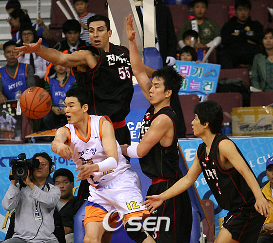 2승 7패와 3승 6패. 인천 전자랜드가 지난 시즌과 올 시즌에 받아든 1라운드 성적표다. 비록 차이는 1승에 불과하지만 기록을 살펴본다면 그야말로 눈에 띄게 좋아진 최근 전자랜드의 전력을 살펴볼 수 있다. 전자랜드는 올 시즌을 대비하기 위해 최희암 감독이 지휘봉을 잡았고 황성인 조우현 김성철을 대거 영입하는 등 완전히 새로운 팀을 꾸려 2년 연속 최하위에서 벗어나기 위한 '몸부림'을 시작했다. 일단 전자랜드의 이런 노력은 1라운드 성적이 말해주고 있다. 공격에서는 지난 시즌과 그다지 나아질 것이 없지만 수비에서 괄목상대할 만한 강화가 이뤄졌다. 지난 시즌 전자랜드의 1라운드 실점은 무려 경기당 94.8점. 득점이 85.2점이었다는 점을 감안한다면 9.6점의 차이가 생긴다. 그러나 전자랜드는 올 시즌 1라운드 실점이 평균 84.1점에 지나지 않는다. 평균 득점이 82.1점으로 3.1점 정도 낮아졌지만 실점이 10점 이상 낮아진 것이 지난 시즌보다 나아진 성적을 올린 요인이 됐다. 특히 실점이 이처럼 낮아진 데는 스틸이 무려 86개로 평균 10개 가깝게 나온 것이 큰 역할을 했다. 전자랜드는 지난 시즌 1라운드동안 고작 59개의 스틸만을 기록, 올 시즌과 비교해 평균 3개의 차이가 났다. 또 블록슛도 지난 시즌보다 9개 많아진 31개를 기록했고 굿 디펜스 역시 늘어나 수비 전반에서 향상된 모습을 보였다. 수비가 강화되다보니 지난 시즌보다 고작 1승을 더 거뒀을 뿐이지만 단 1경기를 빼놓고 모두 접전을 펼쳤다. 지난 시즌 1라운드 7패 중 3경기가 20점차 이상 패배였을 정도로 무너졌지만 올 시즌은 울산 모비스에게 당한 24점차 패배를 제외하고 나머지 5패는 모두 한 자릿수 점수차였고 이중 3번이 2점차 이하의 접전이었다. 수비가 부쩍 강해진 전자랜드는 2라운드 첫 경기에서 부산 KTF에 68점만 내준 채 5점차 승리를 거두고 4승 6패를 기록했다. 물론 연장전을 벌이긴 했지만 1라운드에서 98-99로 패하며 득점도 실점도 많았던 것을 감안한다면 더욱 수비가 강해진 셈이다. 게다가 전자랜드는 최근 4경기에서 모두 70점대 이하 실점을 기록, 이를 뒷받침하고 있다. 전자랜드가 강해진 수비로 2006~2007 현대 모비스 프로농구의 판도를 얼마나 바꿔놓을지 관심이 모아진다. tankpark@osen.co.kr 지난 3일 KT&G전에서 전자랜드가 골팀에서 밀집 수비를 펴는 모습.