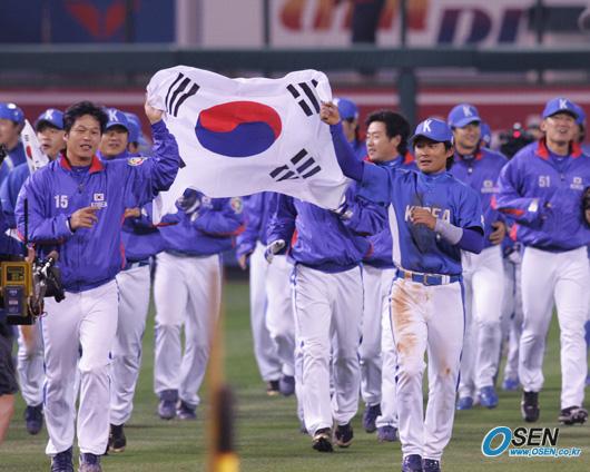 올 스토브리그는 ‘아시안 게임’이라는 변수로 2006 도하 아시안게임이 끝난 후인 12월 달에나 불이 붙을 전망이다. 이미 프리에이전트(FA) 시장이 열리고 물밑에서는 각 구단이 트레이드 논의를 벌이고 있지만 진전이 없다. 대부분의 FA들은 원 소속팀 잔류가 유력하게 점쳐지고 있다. 높은 몸값과 구미를 끌만한 대형 스타들이 많지 않다는 것이 구단들의 평가이다. 또 용병 스카우트는 리스트를 점검하며 움직이고는 있지만 아직 답을 내놓지 못하고 있다. 내년 시즌 용병 기용 숫자와 투타 중 어느 부분을 더 보강할 것인가에 결론을 내리지 못하고 있다. 또 약점을 보완하기 위해 각 구단이 트레이드를 적극 활용할 태세이지만 선뜻 카드를 맞추지 못하고 있다. 이제는 1:1 트레이드보다는 각 구단이 실패 확률을 줄이기 위해 집단 트레이드를 논의하고 있지만 성사가 쉽지 않다. 이처럼 각 구단이 FA 영입, 용병 선발, 트레이드 등을 결정하지 못하고 있는 것은 12월초 열리는 아시안게임 때문이다. 이번 아시안게임에 출전하는 22명의 대표 선수 중에서 14명의 군미필자의 신분이 어떻게 되느냐가 각 구단의 내년 시즌 전력 윤곽이 드러나게 된다. 한국 대표팀이 기대대로 금메달을 획득하게 되면 14명은 병역특례 혜택을 받게 돼 이들은 소속 구단 내년 시즌 전력의 핵으로 자리잡게 된다. 그렇게 되면 이들로 인해 밀려나는 선수들은 트레이드 시장에서 유인책으로 활용될 가능성이 크다. 또 이들이 병역혜택을 받게 되면 소속팀들은 보강해야 할 포지션이 확실하게 드러나게 돼 FA 영입, 용병 선발, 트레이드 등을 어떤 식으로 할 것인지 결정할 수 있게 된다. 따라서 구단들은 트레이드 논의가 생기면 “아시안 게임 끝나고 보자”며 일단 뒤로 미뤄놓고 있다는 것이 구단 관계자들의 전언이다. 내년 시즌 호성적을 위해 전력 보강에 한창인 8개 구단에게 아시안 게임은 야구팬들 못지 않게 최대 관심사인 것이다. 아시안 게임 금메달 획득 여부가 각 구단 전력 구성에 영향을 미칠 전망이다. 지난 3월 WBC서 4강 진출에 성공한 뒤 태극기를 들고 그라운드를 도는 대표선수들. 4강에 오름으로써 군미필자들은 병역특례 혜택을 받았다.