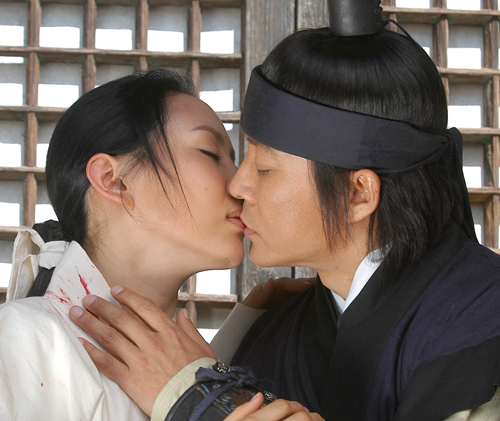 KBS 1TV 대하드라마 '대조영'의 주인공 대조영(최수종 분)이 첫사랑 초린(박예진 분)과 애절한 입맞춤을 나눴다. 11월 11일, 두 사람의 키스신이 촬영된 곳은 경북 안동의 봉정사 영산암. 명승지로 유명한 곳이라 촬영 당일에도 관광객들로 붐볐고 최수종과 박예진은 어쩔수없이 많은 구경꾼들 앞에서 키스신을 촬영했다는 게 제작진의 전언이다. 한 드라마 스태프는 "몰려드는 구경꾼들로 촬영에는 애를 먹었지만, 드라마에 대한 시청자들의 뜨거운 반응을 직접 느낄 수 있어 배우나 스태프 모두가 기분 좋은 하루였다"며 현장의 분위기를 전했다. '대조영'은 제2차 고당 전쟁에서 개동(최수종 분)으로 인해 고구려가 대승을 거두고, 대중상(임혁 분)이 개동이 자신의 아들임을 알게 된 가운데 대조영이 초린에 대한 마음을 정식으로 고백하는 등 드라마는 긴장감 넘치는 역사 속에 주인공들의 멜로선 또한 선명해진 상황이다. 특히 두 사람의 키스신은 대조영이 초린의 목숨을 구하기 위해 스스로 위험을 무릅쓰는 상황에서 이뤄지며 또 위험에 처한 초린을 대조영이 숙영(홍수현 분)에게 맡김으로써 숙영 또한 대조영이 초린을 좋아한다는 사실을 눈치 채게 돼 대조영-초린-숙영의 세 인물의 삼각 멜로선이 극명하게 두드러질 전망이다. 한편 12월 3일 24회에서 연개소문(김진태 분)은 살수전투에서 설인귀에게 맞은 화살로 얻은 상처가 악화되어 마침내 죽음을 맞이하게 된다. 그의 죽음으로 고구려는 그의 큰아들 남생(임호 분)과 둘째 아들 남건(안홍진 분)의 권력투쟁으로 혼란의 소용돌이에 빠지게 된다. 최수종과 박예진의 애절한 키스 신은 12월 16일 '대조영' 27회를 통해 방송된다. orialdo@osen.co.kr KBS 제공.