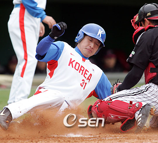 한국야구 아시안게임 대표팀이 역시 한 수 위의 전력을 과시했다. 부산에서 합숙훈련 중인 대표팀은 16일 사직구장에서 가진 LG와의 연습경기서 12안타를 집중시키며 LG의 막판 추격을 뿌리치고 9-7로 승리, 기분 좋은 출발을 했다. 대표팀 선발로 나선 현대 좌완 신인 투수 장원삼은 3이닝 동안 삼진 5개를 솎아내며 퍼펙트로 막아내는 기염을 토했다. 장원삼은 최고 구속 140km의 직구와 안정된 컨트롤로 1.5군급인 LG 타선을 가볍게 요리했다. 대표팀은 공격에서도 날카로움을 과시했다. 1회 이병규의 중월 2루타로 타격감을 조율한 대표팀은 2회 1사후 LG 선발 경헌호로부터 박재홍의 볼넷과 이택근의 몸에 맞는 볼 등으로 맞은 2사 만루에서 이용규의 2타점 적시타로 선취점을 뽑으며 기선을 잡았다. 기세가 오른 대표팀은 3회에는 선두타자 이대호가 2루수 실책으로 출루하면서 봇물을 터트렸다. 다음 타자 장성호의 중전안타를 LG 중견수 오태근이 뒤로 빠트리는 실수를 범해 3점째를 올린 데 이어 이택근의 적시 2루타 등 타자일순하며 10명이 타석에 들어서서 안타 4개, 볼넷 2개, 그리고 상대 실책 2개 등을 묶어 대거 4득점, 일찌감치 승기를 잡았다. 대표팀은 4회초 유일한 아마추어인 언더핸드 투수 정민혁이 최동수에게 적시 2루타를 맞고 1실점했으나 5회말 공격서 이병규의 적시타로 한 점을 보태 승부를 굳혔다. LG와 FA 협상에 한창인 이병규는 3번 지명타자로 출장해 2안타 1타점, 톱타자 이용규와 주장 박재홍이 2안타씩을 기록, 좋은 타격감을 보여줬다. 대표팀은 9번 유격수 박기혁(롯데)을 제외한 선발타자 전원안타를 기록했다. 경기 초반 선발 경헌호의 컨트롤 난조와 잇단 실책으로 점수를 헌납했던 LG는 6회와 8회 2사후 적시타를 터트리며 2점씩을 뽑으며 맹추격을 펼쳤다. 6회에는 좌완 이혜천(두산), 8회에는 우완 윤석민(KIA)을 상대로 2점씩 쫓아갔다. KIA 마무리 투수인 윤석민은 볼스피드가 시즌 때만 못해 9회에도 3안타를 맞으며 2실점, 1⅓이닝 동안 6피안타 4실점으로 부진했다. 한편 대표팀은 17일에는 롯데와 2번째 연습경기를 갖는다. 이 경기는 케이블방송인 MBC-ESPN과 KBS N 스포츠에서 생중계할 예정이다. 1차전처럼 팬들에게는 무료로 개방된다. sun@osen.co.kr 대표팀의 2회말 2사 만루서 이용규의 우전안타 때 2루주자 이택근이 홈에서 세이프되고 있다./부산=손용호 기자spjj@osen.co.kr