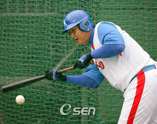 '팀 플레이를 통해 공격력을 극대화 한다'. 아시안게임 3연패에 도전하는 한국야구 국가대표팀이 '번트와 팀 배팅'을 지상과제로 삼고 맹훈련에 한창이다. 부산에 합숙훈련 중인 대표팀은 타격 3관왕인 이대호(롯데)를 비롯해 모든 타자들이 번트 훈련에 임하고 있는 것은 물론 실전에서 팀 배팅을 집중적으로 실천하고 있다. 지난 13일 소집된 후 대표팀의 첫 평가전인 16일 LG와의 첫 연습경기는 짧은 기간이지만 대표팀이 집중적으로 가다듬은 팀플레이의 단면을 보여준 한 판이었다. 이날 김재박 감독은 '작전야구'를 하지 않은 채 선수들에게 할 수 있는 모든 팀 플레이를 해볼 것을 주문했고 선수들은 상황이 오면 알아서 팀 플레이를 펼쳤다. 2번타자 정근우(SK)는 주자가 있으면 진루타를 위해 '밀어치기'를 시도했고 이택근(현대)은 보내기 번트, 그리고 이용규(KIA)는 기습번트 안타를 뽑아내는 등 팀 플레이로 공격력을 강화하는 야구를 시도했다. 정근우는 경기 후 김 감독으로부터 높은 평점을 받았다. 실전 감각이 떨어져 아직 정상 컨디션이 아니지만 대표팀 타자들은 '기본기'를 바탕으로 한 팀 플레이에 익숙해지기 위해 힘을 쏟는 모습이었다. 훈련 때는 본격적인 타격에 들어가기 전 이대호를 비롯한 전타자들이 '번트 연습'에 시간을 할애하고 있다. 김재박 감독의 주특기인 '희생번트'를 수행할 수 있는 능력을 키우기 위한 훈련이다. 정규시즌 때 롯데 4번타자로 한 번도 번트를 대지 않았던 이대호는 "스퀴즈 등 긴급한 상황에 대비하기 위해 번트 훈련을 하고 있다"며 열심히 연습했다. KIA 중심타자인 장성호도 "시즌 때 딱 3번 번트를 대봤다. 하지만 단기전 승부에 대비해서는 번트도 연습해둬야 한다"고 말했다. 이들 외에도 소속팀에서는 중심타자들로 '번트 공격'과는 거리가 멀었던 이병규(LG) 박재홍(SK) 등도 예외없이 타격에 들어가기전 번트 훈련으로 몸을 풀었다. 이번 대표팀의 김재박 감독과 김무관 타격코치는 번트를 비롯한 팀 배팅으로 '공격력을 강화한다'는 방침을 천명하고 선수들이 실천할 수 있도록 지도하고 있는 것이다. 이를 위한 최상의 라인업을 짜기 위해 김 감독은 남은 평가전을 지켜보면서 윤곽을 잡아나갈 태세다. sun@osen.co.kr 번트 훈련 중인 타격 3관왕 이대호.