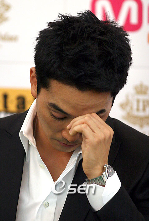 군에서 제대한 송승헌이 18일 임피리얼 팰리스호텔에서 기자회견을 가졌다. 송승헌이 '부대로 팬들이 먹을거리 등을 보내줬는데 군에 반입이 안되서 그것을 불우한 이웃들이 있는 시설인 '사랑이 꽃피는 집'에 보냈다. 거기서 어떤 사람이 '자기는 군에 가고 싶어도 못간다'고 하는 말을 들었다. 그 말을 듣고 사회에 소외된 이웃들이 많다는 것을 알았다. 그 사람들을 위해 열심히 살아야 겠다고 느꼈다고 얘기를 하고는 고개를 숙이고 생각을 하고 있다./손용호 기자spjj@osen.co.kr