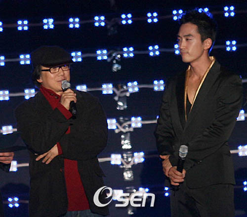 ‘봄의 왈츠’, ‘여름향기’, ‘가을동화’, ‘겨울연가’ 등 아름다운 영상미가 돋보이는 작품을 연출한 윤석호 감독이 송승헌과 다시 작품을 함께 하고 싶다는 희망을 전했다. 11월 18일 오후 7시 20분 서울 올림픽공원 체조경기장에서 열린 ‘송승헌 아시아 팬미팅 2006’에는 ‘가을동화’를 통해 송승헌을 한류스타로 키운 윤석호 감독이 특별 초대돼 눈길을 끌었다. 윤석호 감독은 송승헌을 ‘가을동화’에 캐스팅하게 된 이유에 대해 “1996년에 송승헌을 처음 봤는데 그때의 느낌이 참 좋았다. 눈빛이 신비스럽고 맑아서 ‘가을동화’에 캐스팅하게 됐다”고 밝혔다. 사회를 맡은 개그맨 신동엽이 송승헌과 다시 함께 작품을 할 의향이 있냐고 묻자 윤석호 감독은 “‘가을동화’ 때도 나중에 한번 더 하자고 해서 ‘여름향기’를 통해 다시 함께 하게 된 것이었다. 나는 함께 하기를 희망한다”고 전했으며 송승헌 역시 “언제라도 기꺼이 감독님과 함께 할 준비가 돼 있다”고 화답했다. 윤석호 감독은 “한국 남자들이 군에 갔다 오면 남자다워지듯이 예전에는 송승헌이 소년의 모습이 더 많았다면 지금은 남자의 모습이 더 많은 것 같다”며 “군입대 당시 이 친구가 이 어려움을 겪고 나면 더 클 수 있을 것이라고 생각했다. 군대에서 느끼고 스스로에게 약속한 부분들을 잊지 말고 평생 담고 살아가기를 바란다”고 격려의 메시지를 전했다. 그러자 송승헌은 “연기를 하면서 지금까지도 가슴에 새기고 있는 한마디가 있다. ‘가을동화’ 때 감독님이 ‘연기를 할 때는 진실 되게 하라’고 주문하셨는데 그 말씀이 정말 많은 도움이 됐다”며 “윤석호 감독님이 한류 열풍을 이끈 장본인이라고 해도 과언이 아닌데 앞으로도 좋은 작품으로 한국의 문화를 많이 알려주셨으면 좋겠다”는 희망을 전했다. 이번 팬미팅에는 국내팬을 비롯해 해외에서 온 총 5천 명의 팬들이 참석해 송승헌의 식지 않은 인기를 실감케 했으며 평소 절친한 소지섭이 참석해 우정을 과시했다. 소지섭은 공익근무요원 신분이라 무대 위에는 올라오지 않고 관객석에서 팬미팅을 지켜보며 조용히 응원했다. 한편 팬미팅이 시작하기 전 송승헌 측 관계자는 최근 논란이 되고 있는 군생활 사진 전시회에 대해 "비판과 논란이 있어 예정보다 3일 앞당겨 철수했다"고 팬들 앞에서 공식입장을 밝혔다. hellow0827@osen.co.kr