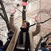 신조의 마지막 퍼포먼스는 욘사마 패션이었다. 니혼햄의 일본시리즈 우승을 마지막으로 은퇴한 신조 쓰요시(34)가 야구선수로는 마지막 모습을 드러냈다. 신조는 지난 18일 삿포로 시내 일대에서 행해진 니혼햄의 일본시리즈 우승 퍼레이드에 참가했다. 그는 유니폼을 입은 동료 선수들과 달리 패셔너블한 사복차림으로 14만 명의 팬들을 향해 손을 흔들며 작별을 고했다. 신조는 장발과 선글래스, 길다란 목도리와 베이지색의 코트를 입고 오픈카에 올라섰다. 한류의 원조 '겨울연가'에서 배용준의 패션과 똑같은 코디였다. 신조는 마치 배용준이 몰려드는 일본 팬들에게 환한 웃음을 지어보였듯 활짝 웃으며 자신이 제작한 게르마늄 팔찌와 손장갑을 3000여 명의 팬들에게 선물했다. 우승 퍼레이드에는 '신조 감동 고마워요'라는 플래카드가 내걸렸고 후계자 모리모토 히초리와 굳게 포옹하면서 동료들과도 작별을 고했다. 삿포로역 앞에 운집한 14만 명의 팬들이 신조를 향해 대환호성을 보냈다. 신조는 웃고 눈물을 흘리고 악수하면서 17년 프로야구 생애의 종지부를 찍었다. 신조는 최근 자신이 디자인한 팔찌를 발표하고 모델을 맡아 정력적인 사회생활을 시작했다. 신조는 이날 "앞으로는 멋드러진 유니폼을 만들고 싶다"는 의욕을 드러내기도 했다. 신조는 은퇴 당시 "깜짝 놀라는 일을 하겠다"고 서프라이즈 인생을 계속하겠다는 말을 한 바 있다. 이후 정계 진출, 헐리웃 진출 가능성이 제기됐다. 특히 NHK의 연말 최고인기 송년 프로그램인 '홍백가합전'의 사회자 후보로도 올라있다. 인기와 스타성이 연예계의 높은 주목을 받고 있다. sunny@osen.co.kr 니혼햄 홈페이지.