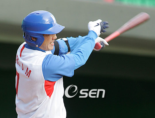 아시안게임 야구대표팀이 연습경기 3연승을 거두었다. 박진만은 만루홈런을 터트렸고, 이대호는 투런홈런 포함 4안타를 터트렸다. 그러나 선발투수 이혜천은 4실점으로 부진했고 소방수 오승환은 홈런 포함 2안타를 맞고 흔들렸다. LG 최만호는 2개의 홈런을 쏘아올리는 기염을 토했다. 김재박 감독이 이끄는 카타르 도하 아시안게임 야구대표팀은 19일 사직구장에서 LG와의 연습경기 3차전에서 홈런 2개 포함 장단 17안타를 터트려 15-7로 대승을 거두었다. 대표팀은 선발 이혜천의 부진으로 먼저 4실점했으나 2회말 단숨에 역전했다. LG 선발 김민기를 상대로 이대호의 좌전안타와 사사구 2개를 묶어 2사만루찬스를 잡고 박진만이 좌월 만루홈런을 터트려 동점을 만들었다. 이어진 2사1,2루 찬스에서 이병규의 좌중간 2타점 2루타로 역전에 성공한 뒤 이대호가 또다시 우중간 2루타로 뒤를 받쳐 7-4로 달아났다. 대표팀은 3회말 공격에서도 바뀐 투수 김재현을 상대로 무사 1,2루에서 조인성의 좌중간 싹쓸이 2루타와 이택근과 이대호의 연속안타로 2점을 보태 11-4로 벌려놓았다. 이대호는 5회말 2사2루에서 좌월투런아치를 그려냈다. 대표팀의 화력에 LG 투수들이 견디질 못했다. 선발투수 이혜천은 2이닝동안 투런홈런 포함 5안타 4실점했다. 1회초 1사1루에서 이성열에게 투런홈런을 맞았고 2회에서도 3안타에 실책까지 범하면 두 점을 보태주었다. 두번째 투수 우규민은 4회 무사1루에서 최만호에게 우월홈런을 맞고 두 점을 내주었지만 3이닝을 잘 막아냈다. 이후 대표팀 마운드는 6회부터 신철인 장원삼 윤석민이 차례로 마운드에 올라 각각 1이닝 무실점으로 LG 공격을 막아냈다. 코나미컵 이후 첫 출격한 마무리 오승환은 9회초 최만호에게 좌월솔로포를 얻어맞는 등 2안타 1실점으로 부진했다. sunny@osen.co.kr