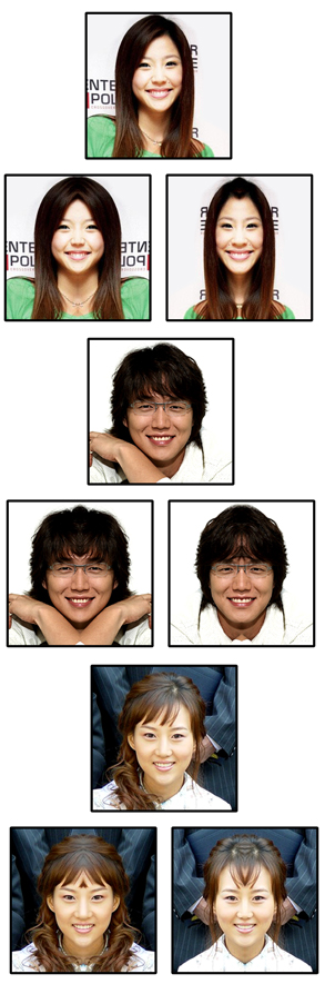 주영훈 이윤미 성시경 장윤정 MC몽 슈퍼주니어…. 이들이 출연 프로그램을 위해 과감히 얼굴을 내던졌다. SBS TV ‘신동엽의 있다! 없다?’(배성우 연출)에서 얼굴 대칭 사진을 놓고 각자의 주장을 펴던 중 자신들의 얼굴을 과감히 모르모트로 내놓았다. 이들이 다툰 주제는 ‘얼굴이 좌우대칭이면 더 쉽게 반할 수 있다 또는 아니다’였다. 화제가 된 두 장의 제보 사진은 분명 한 얼굴인데 보는 사람들은 실제 얼굴보다 반쪽끼리 합성한 얼굴을 더 매력적이라고 느끼고 있다. 따라서 얼굴이 좌우대칭이면 사람들이 더 쉽게 반할 수 있다는 명제가 논란의 주제가 됐다. 이 문제를 풀어가던 중 출연자들의 좌우대칭 사진이 공개됐는데 자신의 사진을 본 출연자들이 스튜디오를 발칵 뒤집어 놓을 정도로 충격에 휩싸였다는 소식이다. 특히 이윤미의 좌우대칭 사진에 폭발적인 반응을 보였는데 오른쪽 얼굴로 합성한 사진이 이윤미의 어렸을 때 모습과 가장 흡사하다고 했고 왼쪽 얼굴로 합성한 사진은 점이 양쪽에 찍혀 절로 폭소를 자아냈다. 주영훈 이윤미 부부는 이윤미의 오른 얼굴 사진은 딸의 모습이 되기를, 왼쪽 얼굴 합성 사진은 아들의 모습이기를 바란다고 밝히기도 했다. 출연 연예인들의 충격적(?)인 좌우합성 사진이 공개될 ‘신동엽의 있다! 없다?’는 24일 저녁 6시 50분에 방송된다. 100c@osen.co.kr 위에서부터 이윤미 성시경 장윤정의 좌우 합성 사진.