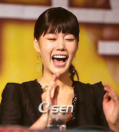 1999년 국내에 번역되어 베스트셀러를 기록한 만화를 영화화 한 ‘미녀는 괴로워’의 제작보고회가 23일 프라자 호텔에서 열렸다. ‘미녀는 괴로워’는 ‘오! 브라더스’의 김용화 감독이 메가폰을 잡고 주진모 김아중이 출연한다. 영화속에 김아중의 노래 실력에 대해 주진모가 '기계가 정말 좋아졌다'고 농담을 하자 김아중이 박장대소 하고 있다./손용호 기자spjj@osen.co.kr
