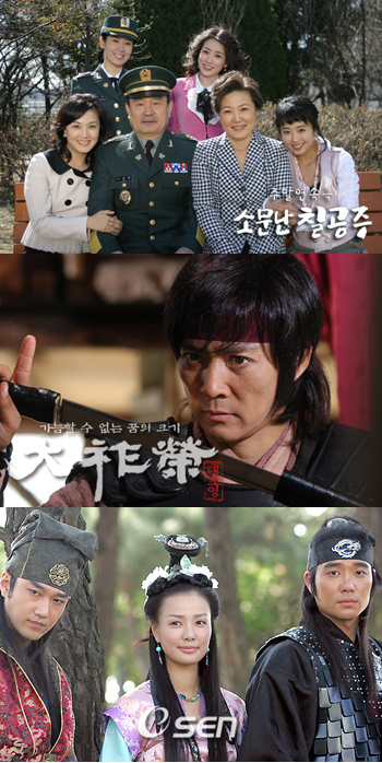 토요일과 일요일에 방송되는 주말 드라마의 시청률 시소게임 진폭이 갈수록 커지고 있다. 토요일에는 폭락하고 일요일에는 폭등하는 그래프가 반복되고 있다. 토요 시청률에 대한 의미 자체가 흔들리는 판국이다. 11월 25일 방송된 주요 드라마의 시청률을 보자. TNS미디어코리아는 KBS 2TV ‘소문난 칠공주’ 37.5%, KBS 1TV ‘대조영’ 19.1%, SBS TV ‘연개소문’ 18.0%로 각각 집계했다. 똑 같은 프로그램의 지난 주 일요일(19일) 성적과 비교해 보자. ‘소문난 칠공주’ 41.9%, ‘대조영’ 26.1%, ‘연개소문’이 22.7%였다. 무려 4.4%에서 7%까지 차이가 난다. 시청률이 대폭락한 셈이다. 하지만 엄밀히 말하면 이는 폭락이 아니다. 시청률이 폭락 폭등이 의미를 갖는 것은 해당 프로그램의 시청률이 경쟁 프로그램으로 옮겨갈 때뿐이다. 위에서 예를 든 프로그램들은 경쟁 프로그램으로 시청자를 거의 빼앗기지 않았다. 이는 점유율을 비교하면 금방 알 수 있다. 점유율은 TV를 보고 있는 가구에서 해당 프로그램을 시청하고 있는 비율을 집계한 자료다. 점유율을 서비스하고 있는 AGB닐슨미디어리서치 집계를 보자. ‘소문난 칠공주’의 25일 점유율은 56%, ‘대조영’은 33%, ‘연개소문’은 30%다. 19일의 점유율은 ‘소문난 칠공주’가 58%, ‘대조영’이 36%, ‘연개소문’이 32%였다. 3% 이내에서 움직이고 있다. 7%까지 폭락한 시청률과는 차이가 크다. 25일 방송분에서 시청률이 폭락한 드라마들은 26일 방송분에서는 틀림없이 폭등세를 기록할 것이다. 이는 드라마 시청률의 변화 원인이 작품의 본질에 있지 않고 외부적인 요인에 기인한다는 것을 의미한다. 그 가장 큰 원인이 바로 생활패턴이다. 주 5일제가 보편화되면서 토요일엔 야외활동을 하는 사람들이 많아졌다. 토요일 고속도로 상황이 이를 잘 말해준다. 특히 요즘처럼 단풍관광 같은 계절적 요인이 있는 경우에는 이런 현상이 더욱 두드러진다. 결국 토요일의 안방극장은 정기적으로 ‘문닫는 날’이 된 셈이다. 교외활동에서 돌아오는 일요일엔 당연히 시청률이 폭등한다. 이런 패턴이라면 앞으로 주말 시청률은 그 전주와 비교하는 것이 타당하다 할 것이다. 토요일 폭락과 일요일 폭등은 더 이상 뉴스로서의 가치가 없어졌다. 100c@osen.co.kr 위에서부터 ‘소문난 칠공주’ ‘대조영’ ‘연개소문’.