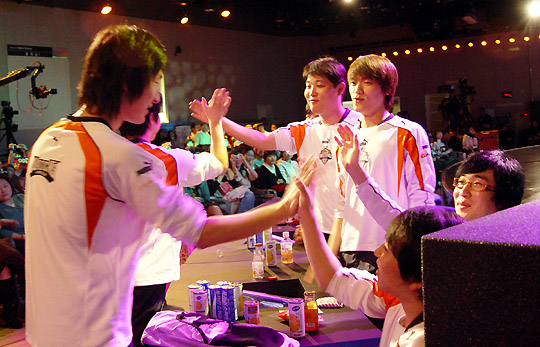 후기리그 포스트시즌 진출에 실패한 KTF가 내년 시즌을 대비해 '도깨비팀'으로 변신했다. 이스트로에 이어 후기리그 결승직행을 노리던 르까프에 일침을 가했다. KTF는 26일 서울 용산 e스포츠 상설경기장에서 벌어진 '스카이 프로리그 2006' 후기리그 르까프전서 박정석, 김윤환 등의 역전승과 안정된 이병민-홍진호 듀오의 활약에 힘입어 르까프를 3-1로 꺾고 2연승을 달렸다. 최악의 4연패 끝에 거둔 2연승이지만 KTF의 승리는 그만큼 값졌다. 선수단이 모두 혼연일체가 되서 승리에 대한 집념을 잘 보여준 경기였다고 할 수 있다. 박정석과 김윤환 은 상대편 보다 뚜렷한 열세에서도 포기하지 않고 경기를 임해 역전승을 거두며 박수 갈채를 받았다. '영웅'과 '사신'의 대결로 관심을 모았던 양 팀의 선봉대결은 박정석이 초반 러시 실패와 오영종의 리버에 일꾼을 잃는 등, 불리한 상황에서 확장을 시도하는 상대의 틈을 놓치지 않고 총공세를 펼쳐 극적인 역전에 성공하며 KTF가 1-0으로 앞서가기 시작했다. 첫 세트를 내준 르까프는 이제동을 내세웠다. 이제동은 저글링으로 상대 앞마당을 빠른 뮤탈 생산으로 저그전의 진수를 보여주며 스코어를 1-1 원점으로 돌렸다. 승부의 균형을 가른 것은 3세트였다. 홍진호-이병민 조는 2해처리 뮤탈-골리앗 체제를 선택, 과감한 러시로 상대 테란의 일꾼을 병력을 모두 잡아내며 기세를 올렸다. 거기다가 도와주러 온 최가람의 뮤탈리스크도 모조리 잡아내며 2-1 역전에 성공했다. 기세가 오른 KTF는 김윤환이 출전한 4세트도 잡아내며 승부에 쐐기를 박았다. 김윤환은 박지수보다 확장, 병력 모든 것이 열세인 불리한 상황에서 박지수의 대규모 드롭십 공격을 완벽하게 막아내며 반격, 상대 확장과 주병력을 괴멸시키며 경기를 마무리했다. ◆ 스카이 프로리그 2006 후기리그 10주차 4경기 ▲ 르까프 오즈 1-3 KTF 매직엔스 1세트 오영종(프로토스, 1시) 박정석(프로토스, 7시) 승. 2세트 이제동(저그, 1시) 승 조용호(저그, 7시) 3세트 이학주(테, 11시)/최가람(저, 5시) 이병민(테, 7시)/홍진호(저, 1시) 승. 4세트 박지수(테란, 5시) 김윤환(테란, 11시) 승. scrapper@osen.co.kr 한국e스포츠협회 제공
