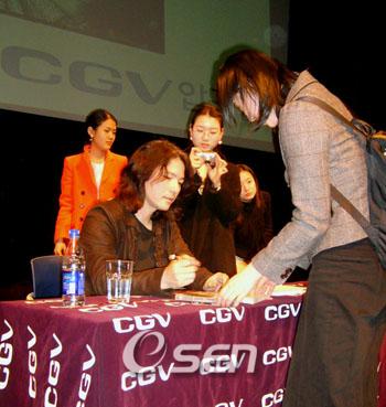 영화 ‘러브레터’ ‘4월이야기’ ‘하나와 앨리스’로 익숙한 일본 이와이 슌지 감독이 11월 29일 밤 서울 CGV압구정에서 국내 관객들과 대화를 나눴다. 이날 ‘이와이 슌지와의 대화’는 이와이 슌지 감독이 프로듀서를 맡은 영화 ‘무지개 여신’ 상영이 끝난 후 진행됐다. 300여명의 국내 팬들이 모여 성황을 이룬 가운데 진행된 이날 행사에서 이와이 슌지 감독은 먼저 한국어로 “안녕하세요, 저는 이와이 슌지입니다”라고 인사말을 건넸다. 이어 히트작 ‘러브레터’ 하이라이트의 대사인 “오겡끼데스까?(잘 지내시나요?)”로 그 시작을 알렸다. 이날 자리한 관객들은 이와이 슌지 감독과의 만남을 학수고대하고 있었다는 듯 쉴새없이 질문을 쏟아냈다. “영화를 연출하는 기본 자세는 어떤 것인가?”, “‘무지개 여신’에선 무지개가 고인 물과 휴대전화에 담겨 있는데 어떤 의미로 연출된 것인가?”, “왜 연출을 직접하지 않았는가?”, “제2의 러브레터라는 평가가 있다”, “사춘기 시절 쉽게 표현하지 못했던 경험담을 바탕으로 한 것이 아닌가?” “영화 소재 발굴은 어떻게 하는가?” 등 영화에 심도있는 질문 뿐 아니라 이와이 슌지 감독 개인에 대한 질문들이 쏟아졌다. 특히 일부 관객들은 이와이 슌지 감독과의 만남을 기다렸다는 듯 일본어로 인사말하며 자신을 소개하기도 해 눈길을 끌었다. 국내 관객들의 질문을 받은 이와이 슌지 감독은 사뭇 진지한 표정으로 대답했다. 영화 연출 자세에 대해서는 “세상은 수수께끼가 가득하고 인간은 신기한 존재다”고 밝혔고, “이번 영화는 처음부터 연출을 하지 않고 오직 프로듀서로만 활동하기로 했다”고 설명했다. 특히 ‘제2의 러브레터’라는 평가에 대해서는 “각본을 쓴 사쿠라이 아미와 쿠마자와 나오토 감독, 그리고 나 세 사람의 결과물이다”며 ‘러브레터’와는 차별화를 강조했다. 이어 “영화에 대한 평가는 프로듀서를 한 자신이 아니라 오로지 관객의 몫이다”며 관객들의 반응에 깊은 관심을 보였다. 이날 관객들은 짧은 시간동안의 대화 시간을 아쉬워했지만 이와이 슌지 감독을 직접 만났다는 것 자체만으로도 충분히 만족해 했다. 한편 이와이 슌지 감독은 지난 10월 열린 부산국제영화제와 일반 시사회를 통해 ‘무지개 여신’이 열렬한 반응을 얻자 방한을 결정했다. 이날 관객과의 대화의 시간을 가진 이와이 슌지 감독은 30일 오후 한 차례 무대인사를 하는 일정을 제외하고는 특별한 스케줄 없이 다시 일본으로 돌아갈 예정이다. pharos@osen.co.kr 29일 서울 CGV압구정에서 국내 관객과의 대화를 마친 이와이 슌지 감독이 국내 팬들에게 사인을 해주고 있다.
