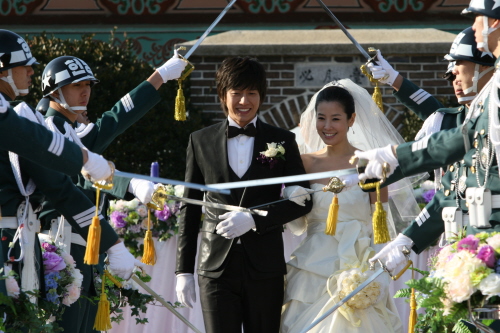 KBS 2TV 주말극 ‘소문난 칠공주’(문영남 극본, 배경수 연출)의 ‘설칠’ 이태란과 ‘하남’ 박해진이 아주 특별한 결혼식을 올렸다. 지난달 29일, 서울에 위치한 모 부대 내 행사장에서 진행된 설칠과 하남의 결혼식은 200여명의 해당 부대 장병들이 직접 하객으로 출연한 것을 비롯해 군악대의 연주에 맞춰 예도단의 교차칼 사이로 신랑, 신부가 입장을 하고 꽃으로 장식된 오픈 지프를 타고 퍼레이드를 하는 등 좀처럼 보기 힘든 결혼식 장면을 연출했다. 이번 결혼식은 ‘소문난 칠공주’를 통해 여군을 비롯한 군대에 대한 이미지가 일반인들에게 친근하게 어필된 점과 해당 부대에서 직접 촬영을 진행함으로써 장병들의 사기를 진작시켜준 점에 대한 보답으로 군 부대 측이 적극적인 지원 의사를 밝혀옴에 따라 성사될 수 있었다고. 특히 그 동안 군부대 촬영을 통해 장병들과 스스럼 없이 지내 온 이태란이 군복을 벗고 화려한 드레스 차림으로 등장하자 장병들이 군인 특유의 환호성으로 이태란을 맞아 실제 결혼식을 방불케 할 정도의 들뜬 분위기 가운에 결혼식이 진행됐다. 시종일관 유쾌한 분위기에서 진행된 이번 촬영의 유일한 악재는 추운 날씨. 이태란은“온 몸이 바들바들 떨렸는데 그게 날씨 탓인지 아니면 결혼식을 올리는 신부여서인지는 잘 모르겠다. 가능하다면 실제 결혼식도 부대에서 올리고 싶은 욕심이 들 정도로 정말 황홀했다”며 결혼식 소감을 밝혔다. 박해진은“'소문난 칠공주'가 4월 1일에 첫 방송을 시작했으니, 봄, 여름, 가을, 겨울 사계절을 쫓아다닌 결실을 이제서야 맺게 됐는데 날씨가 도와주질 않는다”며 “드라마 속 첫 사랑도, 첫 키스도, 첫 결혼식까지도 이태란 선배와 하게 됐다. 연기 인생에 있어 중요한 첫 경험들을 이태란 선배와 하게 돼 평생 잊지 못할 것 같다”고 밝히기도 했다. 이태란과 박해진의 결혼식은 12월 10일에 방송되는 ‘소문난 칠공주’ 74회에 방송된다. orialdo@osen.co.kr
