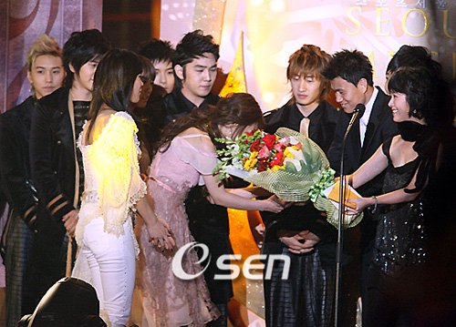 슈퍼주니어, 씨야, 브라운아이드걸스가 서울가요대상에서 신인상을 수상했다. 12월 1일 오후 6시 경기도 고양시 일산 킨텍스에서 열린 제 16회 서울 가요대상 시상식에서 슈퍼주니어와 씨야, 브라운아이드걸스 등 총 세 팀이 신인상을 수상하는 영광을 안았다. 첫 번째로 이름이 호명된 슈퍼주니어의 리더 이특은 “이수만 이사 등 많은 분들께 감사드린다. 노래, 춤, 연기, DJ 등 많이 하고 있지만 정말 부족하다. 더 노력하라는 뜻으로 알고 열심히 노력하겠고 팬들과 안티팬의 따끔한 질책 부탁드린다”고 소감을 밝혔다. 여가수들은 눈물로 말을 잇지 못했다. 특히 ‘여인의 향기’로 데뷔한 ‘여자 SG워너비’ 씨야는 멤버 세 명이 모두 눈물 바다였다. 막내 이보람은 “감사드린다. 사랑하는 부모님 정말 감사드린다”고 말했으며 리더 남규리는 “GM 소속사의 정신적인 지주이자 사랑하는 김광수 이사에게 감사드리고 저를 낳고 길러주신 부모님에게도 정말 감사드린다. 그리고 SG워너비 선배들과 기도해주신 여러분께 감사드린다”고 말하며 눈물을 멈추지 못했다. 조PD와 함께 부른 'Hold The Line'으로 올 여름 많은 사랑을 받은 브라운아이드걸스는 “부족한 저희 4명이 이 자리까지 올라올 수 있도록 해주신 분들께 감사드리고 팬들 정말 사랑한다. TV 보고 있는 부모님 응원해주셔서 감사드리고 사랑한다”고 소감을 전했다. hellow0827@osen.co.kr 신인상을 수상하고 있는 씨야와 슈퍼주니어, 시상자는 축구선수 정경호와 탤런트 한지민. /일산=손용호 기자 spjj@osen.co.kr