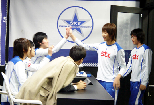 STX 소울이 김구현, 박종수 프로토스 라인의 활약에 힘입어 꺼져가던 4강행 불씨를 살렸다. STX는 2일 서울 삼성동 MBC게임 히어로센터에서 열린 '스카이 프로리그 2006' 후기리그 11주차 2경기에서 김구현-박종수 프로토스 라인, 팀플 1위 김윤환의 활약에 힘입어 3-2 짜릿한 한 점차 승리를 거뒀다. 이로써 STX는 5승 4패 득실 -1을 기록, 이날 경기가 없었던 4위 삼성전자(득실 6)에 득실에서 뒤지며 4강행 희망을 부풀렸다. 또 팀의 2연패를 끊었다. 이날 경기는 STX가 한 경기를 이기면 온게임넷이 쫓아가는 팽팽한 접전이었다. 프로토스 라인이 강한 STX와 저그 라인이 강한 온게임넷의 승부는 5세트 에이스 결정전에서 승부가 갈렸다. 2-2 동점상황에서 맞붙은 에이스결정전에서 STX는 4세트에서 패배한 박종수를 온게임넷은 팀의 에이스 '아티스트' 한동욱을 내세웠다. 박종수는 노게이트 더블 넥서스를 했음에도 빠르게 질럿-드라군으로 한동욱을 압박하며 9시를 가져갔다. 한동욱은 초반 상대의 셔틀을 동반한 압박에 위험했지만 일꾼을 동원한 발빠른 대처로 위기를 넘기며 확장을 늘려갔다. 박종수는 셔틀을 활용, 지속적인 견제를 하면서 아비터를 생산했지만 4 곳에서 자원을 공급받는 한동욱에게 힘에서 밀리며 11시 지역을 내줬다. 이 때 박종수의 템플러가 빛을 발했다. 한동욱의 파상적인 공세를 지켜낸것은 캐리어도 리버도 드라군-질럿이 아닌 박종수의 하이템플러 였다. 하이 템플러를 이용, 한동욱의 공격에 고비를 넘긴 박종수는 다수의 캐리어를 확보, 한동욱의 확장기지를 차례대로 밀어버리며 항복을 받아냈다. ◆ 스카이 프로리그 2006 후기리그 11주 2경기. ▲ STX 소울 3 – 2 온게임넷 스파키즈. 1세트 김구현(프로토스, 7시) 승 박명수(저그, 1시). 2세트 김남기(저그, 5시) 박찬수(저그, 11시) 승. 3세트 김윤환(저, 7시)/진영수(테, 1시) 승 원종서(테, 11시)/이진성(저, 5시). 4세트 박종수(프로토스, 5시) 전태규(프로토스, 1시) 승. 5세트 박종수(프로토스, 7시) 승 한동욱(테란, 3시) scrapper@osen.co.kr 한국e스포츠협회 제공.