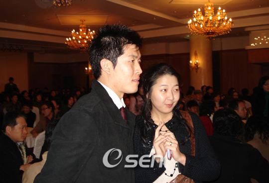 지난달 비밀리에 입국, 국내서 훈련 중인 김병현(콜로라도)이 3일 오후 광주 무등파크호텔서 열린 KIA 투수 이대진의 결혼식에 참석, 처음으로 공개적인 자리에 나타났다. 김병현이 한 여성팬과 기념 촬영하고 있다./광주=이선호 기자 sunny@osen.co.kr