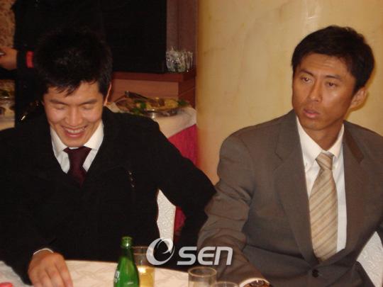 현역 복귀한 손혁과 나란히 앉아 웃는 김병현