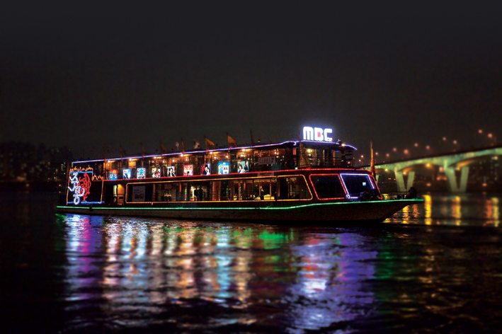 한강에 MBC 타이틀을 건 유람선이 떴다. MBC의 다채로운 콘텐츠를 활용해 새 단장한 ‘MBC 방송테마 유람선’이 한강 운항을 시작해 도심과 한강다리를 지나는 운전자 등 많은 이들의 눈길을 사로잡고 있다. 11월 30일 여의도 유람선 선착장에서 열린 취항식에는 MBC 최문순 사장, 하동근 imbc 사장, 임성주 C&그룹 부회장, 최백순 C&우방랜드 대표이사 등 약 100여 명이 한자리에 모여 ‘MBC 방송 테마 유람선’ 탄생을 축하했고 12월 1일부터 본격적인 운항을 시작했다. 유람선 내부는 MBC 역사관, 홍보관, 포토존 등으로 꾸며져 있다. 홍보관에는 LCD 모니터를 설치해 현재 방송되고 있는 드라마 포스터와 프로그램 타이틀 등을 전시하고 포토존은 '주몽', '내 이름은 김삼순', '대장금' 등 인기드라마 속 등장인물들의 실물 크기 사진을 배치해 탑승객들이 함께 사진을 찍고 즐길 수 있는 공간으로 꾸몄다. 또한 역사관에는 과거 MBC를 통해 방송된 프로그램 사진전과 슬라이드쇼 등을 전시해 친밀감 있는 MBC를 느낄 수 있도록 했다. '주몽'의 삼족오 깃발을 휘날리며 운항 중인 ‘MBC 방송 테마 유람선’은 380명이 승선할 수 있는 대형 규모로 하루 4~8회까지 여의도와 잠실구간 편도, 왕복으로 운행된다. hellow0827@osen.co.kr