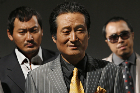 한동안 스크린을 떠났던 중견 연기자 문성근이 최근 1년새 5편의 영화에 출연하는 몰아치기를 하고 있다. 지난해말 '오로라 공주'를 시작으로 올 여름 강우석 감독의 '한반도'에서 친일파 총리 역을 맡더니 범죄 스릴러 '두뇌유희 프로젝트, 퍼즐', '작은 연못' '수' 등을 연달아 찍었다. 노근리 사건을 다룬 '작은 연못'과 재일동포 최양일 감독의 하드보일드 액션 '수'는 내년 개봉 예정이다. 영화계로 복귀하며 "그동안 연기에 배가 고팠다"는 소감을 밝혔던 그가 먹성좋게 다양한 배역을 소화하고 있는 것이다. 홍상수 감독의 '해변의 여인'에서는 잠깐 목소리 연기로 깜짝 출연까지 했다. 그의 최근 출연작 가운데 화제를 모을만한 영화는 '수'. 하드보일드의 세계적 거장 최양일 감독의 첫번째 한국 영화가 될 '수'에서 문성근은 마약조직의 보스 구양원으로 절대 악을 연기했다. 기름을 발라 뒤로 넘긴 올백 헤어스타일에 이죽거리는 미소, 한쪽으로 비뚤어진 야비한 눈매가 영락없는 조폭 두목이다. 문성근이 영화에서 악역을 맡은 건 이번이 처음이 아니다. 오히려 그는 악역 연기에서 천부적인 자질을 드러냈다. 1997년 이창동 감독의 '초록물고기'가 그 대표작이다. 한 시골 마을 건달 조직의 보스인 배태곤을 연기한 그는 소름 끼칠 정도로 냉혹하고 비열한 악인의 표본을 선보였다. '질투는 나의 힘'(2002년)에서도 얄팍한 힘으로 부하 직원들을 농락하는 편집장으로 나와 인간의 양면성을 표출했고, '한반도'의 매국노 총리 역시 화이트 칼라 악당으로 적역이었다. 그런 그조차 "연기 인생 20년 중 가장 지독한 역할"이라고 털어놓은 게 '수'의 조폭두목 구양원이다. 어린 소년들을 데려다 마약 밀매상으로 키우고 배신자는 가차없이 제거하는 냉혈한을 연기했다. '무간도'의 할리우드 리메이크 작 '디파티드'에서 잭 니콜슨이 연기한 악당이 연상될 듯. 철저하게 망가진 모습으로 최양일 감독의 기대작에 출연한 그의 새로운 변신이 기대된다. mcgwire@osen.co.kr 트리쯔클럽 제공
