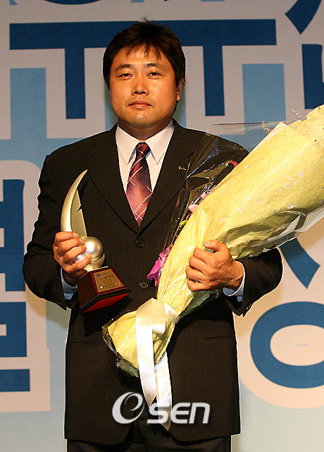 '위풍당당' 양준혁(삼성)이 또 하나의 신기원을 열 태세다. 통산 최다 홈런, 통산 최다안타 등 타자부문 통산 신기록 행진을 펼치고 있는 삼성 간판스타 양준혁(37)이 11일 저녁에 열리는 2006 골든글러브에서는 최고령 수상자로 이름을 올릴 전망이다. 지명타자 부문 후보자에 오른 양준혁은 올 시즌 두드러진 활약을 앞세워 경쟁자들을 무난히 제압할 것으로 보인다. 올해 지명타자 부문 후보자는 작년 수상자인 김재현(SK)을 비롯해 KIA의 ‘늦깎이’ 이재주, 한화 이도형, 현대 용병 서튼, 롯데 호세 등이다. 올 시즌 녹슬지 않은 방망이 솜씨를 과시한 양준혁은 출루율 1위(0.445), 타점 2위(81개)의 호성적으로 개인통산 7번째 골든글러브 수상이 유력하다. 올해 41세인 호세는 홈런에서는 양준혁에 앞섰으나 나머지 타율, 타점, 출루율에서는 양준혁에 뒤져 있다. 양준혁이 올해 골든글러브를 수상하게 되면 역대 최고령 수상자의 영광을 차지하게 된다. 양준혁은 시상식이 열리는 11일 기준으로 37세 6개월 16일(1969년 5월 26일생)로 종전 최고령 기록을 경신하게 된다. 종전은 2002년 투수 골든글러브를 수상한 한화 송진우로 36세 9개월 25일이었다. 40세인 송진우는 올해는 투수 부문 후보에 오르지 못했다. 양준혁의 ‘역대 최고령 수상자’ 등극에 유일한 변수는 포수 부문의 후보인 현대 김동수다. 올해 만 38세인 김동수가 수상자가 되면 양준혁은 역대 2위에 머물게 된다. 투수 부문 후보인 한화 좌완 마무리 구대성도 37세이나 양준혁 보다 생일이 늦다. 하지만 김동수는 경쟁자들이 만만치 않아 수상을 낙관할 수 없는 상황이다. 김동수가 ‘고목나무에 꽃이 피듯’ 올해 공수에서 안정된 활약을 펼쳤지만 지난해 수상자인 진갑용(삼성)을 비롯해 홍성흔(두산) 등도 만만치 않은 실력을 발휘했기에 김동수의 수상 전선이 밝은 편은 아니다. 포수 부문선 한국시리즈 우승 프리미엄에 타율(2할8푼8리)과 도루저지율(0.404)이 포수 후보 중 가장 좋은 진갑용의 2년 연속 수상 가능성이 높다. 양준혁은 설령 역대 최고령 수상 기록을 놓친다 해도 2년 만에 골든글러브 수상자로 복귀할 가능성은 높다. 그렇게 되면 생애 7번째 수상으로 내외야수에 지명타자 부문까지 골고루 섭렵하는 특이한 이력을 유지하게 된다. 양준혁은 지난 96년과 97년 외야수로 골든글러브를 받은 데 이어 98년 지명타자로 자리를 옮겨 상을 받았다. 그리고 3년 후인 2001년 다시 지명타자 타이틀을 가져온 그는 2003년 외야수 골든글러브, 2004년 최고 1루수로 선정됐다. 지난달 2일 열린 2006시즌 개인 타이틀 시상식서 출루율상을 받은 양준혁.
