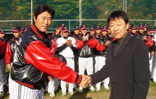 2006년 12월 11일 LG 트윈스 사람들은 이래저래 착잡했을 듯하다. 이날 오후 2시에는 지난 10년간 간판타자로 군림했던 이병규(32)가 주니치 입단 기자회견을 가졌다. LG 홍보팀 직원도 참석한 이 자리에서 이병규는 "LG는 10년간 몸 담았던 팀이었는데 도움을 많이 못 드렸다고 생각했는지 모르겠지만 (FA 잔류협상 과정에서) 앞에 부분은 빼고(10년간의 팀 공헌도를 의미하는 듯) 말씀하는 부분이 있어 서운했다"라고 토로, LG 사람들의 가슴에 못을 박았다. 이어 오후 4시 시작된 골든글러브 시상식. 외야수 부문 최다 득표자로 KIA 이용규가 선정됐다. 2004시즌까지 LG 2군에서 맴돌던 바로 그 선수였다. 그러나 이제는 명실상부한 2006시즌 최다안타왕으로서 일본으로 떠난 이병규의 뒤를 이을 '안타 제조기'로 각광받고 있다. 외야 수비나 주루 역시 이병규에 밀릴 게 없다. LG가 이용규의 잠재력을 못 알아봤을 수도 있고 LG와 이용규가 궁합이 안 맞아서였을 수도 있다. 반면 LG는 기대를 걸었던 외야수 박용택이 탈락하면서 단 1명의 골든글러브 수상자도 배출하지 못했다. 김재박 감독을 최고 대우(3년 총액 15억 5000만 원)로 영입했지만 2007시즌 선수 쪽의 맨 파워는 현재까지 뚜렷히 보강된 게 없다. LG는 이병규가 있었음에도 2006년 창단 첫 최하위란 창피를 당했다. 그렇다면 이병규가 없어진(덕분에 약 40억 원의 추가 지출 부담은 사라졌다) 2007년은 '무조건 꼴찌'가 필연일까. 이제 그 공은 LG의 남은 선수들에게 넘어갔다. 'LG의 이병규였지 이병규의 LG가 아니라는 사실'을 입증해 보이는 데 박용택 박경수 이승호 김광삼을 비롯한 남은 LG 선수들의 프로로서 자존심이 걸렸다 해도 과언이 아니다. sgoi@osen.co.kr 김재박 감독이 LG 선수단과 상견례하는 모습.
