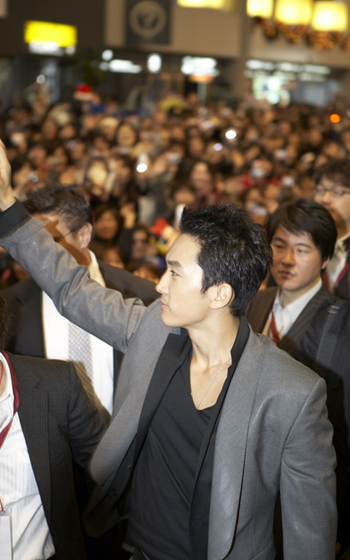 내년 3월 17일 일본서 대규모 팬미팅 역시 ‘일본을 방문하지 않은 한류스타 마지막 거물’의 위력은 대단했다. 송승헌의 일본 방문에 동행한 우리나라 언론이 전한 열기도 뜨거웠지만 같은 소식을 전하는 일본 언론도 흥분하기는 매한가지다. 12월 13일자 는 송승헌 입국 환영인파가 배용준 입국 때의 규모를 넘었다고 크게 놀라고 있다. 일본 스포츠신문 중 최고의 권위를 자랑하는 이 신문은 12일 나리타 공항에 집결한 일본팬 규모를 6000여 명으로 집계했다. 이 수치는 지난 2004년 배용준이 하네다 공항으로 입국했을 때 몰려든 5000여 명을 능가한다고 적고 있다. 또한 이 기록은 외국인 환영객 집계 사상 최대 인원이라고 의미를 부여했다. 송승헌은 무명시절이던 지난 1996년 일본을 찾은 적은 있지만 스타의 반열에 오른 이후에는 12일의 방일이 처음이었다. 일본 언론이 ‘일본을 방문하지 않은 한류스타 마지막 거물’이라고 떠받들만한 이유가 있었다. 는 2년간의 군복무가 송승헌에 대한 기대감을 더 키웠다고 분석했다. 의 보도는 더욱 들뜬 표정이다. 나리타 공항에는 50여 명의 철야조가 버티고 있었다는 사실을 소개한 뒤 “이런 인원수를 본 적이 없다”는 공항관계자의 말을 인용하며 현장 분위기를 전했다. 만약의 사고에 대비해 300명의 기동대도 배치됐다고 이 신문은 적었다. 또한 송승헌이 후지TV에 직행해 기자회견을 하는 동안 방송국 주변에는 7000여 명이 몰려들어 ‘핫 판타지 오다이바 2006-2007’ 행사가 벌어지고 있는 오다이바 일대가 술렁거렸다고 소식을 전했다. 송승헌은 이날 기자회견에서 내년 3월 17일 사이타마 슈퍼아레나에서 일본 첫 팬미팅을 열기로 했다는 사실을 공표했다. 이 팬미팅의 입장권은 1월 20일부터 판매에 들어간다. 송승헌은 14일 귀국한다. 100c@osen.co.kr