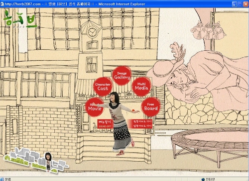 ‘강혜정을 내 마음대로 움직인다?’ 강혜정 배종옥 정경호 주연의 영화 ‘허브’(허인무 감독)가 이색 홈페이지를 오픈해 눈길을 끈다. ‘허브’는 영원한 7살 상은이의 가슴 벅찬 첫 사랑과 가슴 시린 첫 이별을 진솔하게 다룬 휴먼스토리 영화. 강혜정은 주인공 상은 역을 맡았다. 최근에 오픈된 ‘허브’ 홈페이지 첫 화면은 동화같은 배경으로 영화 속 상은이가 가운데에 자리잡고 있다. 그리고 영화와 관련된 메뉴에 들어가기 위해서 마우스를 움직이면 강혜정이 따라 움직인다. 상은이가 허브마을 곳곳을 안내하는 길잡이처럼 말이다. 그냥 걷기도 하고 또는 날아다니는 듯 양팔을 움직이며 이동하기도 한다. ‘허브’의 홈페이지는 방문자들이 자유자재로 홈페이지를 이동하면서 영화의 아이템을 발견할 수 있도록 구성됐다. 게다가 홈페이지에 표현된 상은집, 비디오 가게, 꽃집, 경찰서, 자동차 극장 등 영화 속 주요 장소에 도착하면 상은 역을 맡은 강혜정의 깜찍한 말투도 들을 수 있다. 깜찍한 7살 소녀의 모습을 연기한 강혜정의 모습을 담은 이 영화는 2007년 1월 11일 개봉한다. pharos@osen.co.kr