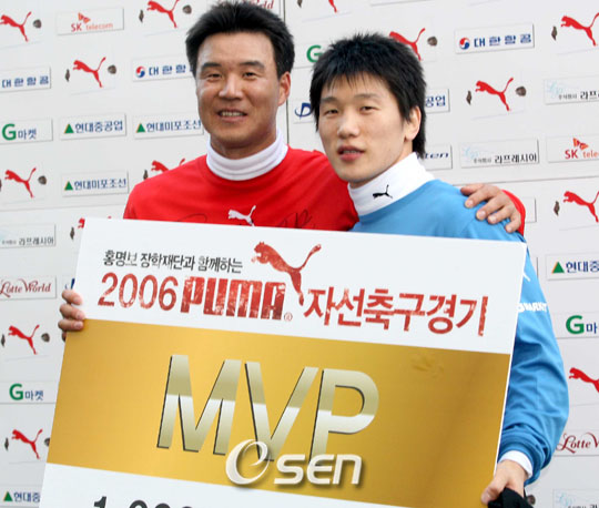 "올해는 평생 잊지 못할 1년이 될겁니다". 재단법인 홍명보 장학재단이 크리스마스인 25일 개최한 '2006 푸마 자선축구 경기'에서 나란히 공동 최우수선수(MVP)에 선정된 테니스 스타 이형택(삼성증권)과 '한판승의 사나이' 이원희(KRA)가 평생 잊지 못할 한 해의 연말에 뜻깊은 행사에 참여하게 되어 더욱 잊지 못할 것이라고 밝혔다. 이형택과 이원희는 경기가 끝난 뒤 인터뷰에서 "뜻깊은 자리에 참석해 축구 스타들과 함께 그라운드를 뛴 것 자체가 영광"이라며 "소아암에 걸려 신음하고 있는 여러 어린이들이 경기를 보고 희망과 용기를 얻어 병마를 극복하길 바란다"고 입을 모았다. 이날 이형택과 함께 2골을 넣은 이원희는 "유도에도 발 기술이 있듯이 축구도 발로 하는 종목이기 때문에 훈련할 때 많은 도움이 된다. 모든 기술을 완성할 수 있는 스포츠이기 때문에 가끔 감독님과 코치들과 함께 축구를 하곤 한다"며 "하지만 축구를 잘하는 편이 아니라서 제발 창피만 당하지 않게 해달라고 빌었다"고 너스레를 떨었다. 또 이형택도 "어렸을 때 축구를 워낙 좋아해 공격수와 골키퍼를 모두 다 했다"며 "지금은 테니스를 해 축구를 접할 기회가 많지 않지만 겨울 같은 비시즌에 체력 운동 삼아 가끔 한다. 체력 향상에 도움이 된다"고 말했다. 올 시즌을 마감하는 소감을 묻는 질문에 이형택은 "세계랭킹 50위 기록도 깼고 도하 아시안게임에서도 단체전에서 금메달을 따내 뜻깊은 한 해였다"며 "내년도 올해처럼 부상없이 마감했으면 좋겠다"고 밝혔고 이원희는 "축구에서 첫 우승을 하면 첫 눈이 내린 것과 같다는 얘기가 있는 것으로 알고 있다"며 "하지만 아시안게임 우승으로 그랜드슬램을 달성하고 나서 나의 첫 눈은 이미 녹아버렸다"고 말해 새로운 도전에 나설 것임을 내비쳤다. tankpark@osen.co.kr 수원=김영민 기자ajyoung@osen.co.kr