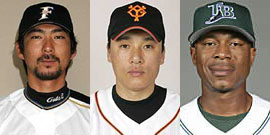 요미우리의 홈런 100발 클린업트리오가 구축됐다. 템파베이 출신 새로운 외국인타자 데이먼 호린스의 입단으로 요미우리는 오프시즌에서 강력하게 추진해온 타선 리노베이션이 사실상 끝났다. 팀을 떠난 선수는 고쿠보(소프트뱅크 이적) 한 명뿐이다. 그러나 FA 오가사와 미치히로(전 닛폰햄), 다니 요시토모(전 오릭스), 호린스 영입으로 고쿠보의 공백을 넘치도록 메웠다. 특히 이승엽과 함께 요미우리의 2007년형 클린업트리오에 관심이 쏠린다. 잘 만하면 홈런 100발이 터질 수 있도 있는 타선이다. 4번 타자 이승엽을 중심으로 3번타자 오가사와라 미치히로, 5번타자 데이먼 호린스가 배치됐다. 다카하시 요시노부는 우타자 호린스와 함께 상대 투수에 따라 클린업트리오에 포함될 것으로 예상된다. 그러나 클린업트리오를 모두 좌타라인으로 구축하기엔 위험 요소가 따르기 때문에 다카하시를 6번에 고정할 가능성도 높다. 이미 이승엽(41홈런)과 오가사와라(32홈런)는 73홈런을 합작했다. 2007년에도 비슷한 홈런수를 기록한다고 가정한다면 호린스가 30홈런을 기록하게 되면 무적의 100홈런 클린업이 만들어진다. 호린스는 올해 템파베이에서 15홈런을 터트리는 등 일발 장타력을 갖추고 있다. 충분히 가능한 수치다. 2006년형 요미우리의 클린업트리오는 3번 니오카, 4번 이승엽, 5번 다카하시로 구성됐다. 그러나 상대팀에 위협을 주지 못했다. 폭발적인 타력을 과시했던 이승엽만 제 자리를 지켰을 뿐 다카하시는 두 차례의 부상으로 사실상 전열에서 이탈했고 니오카는 타순을 이동했다. 결과적으로 요미우리 추락의 원인이 됐다. 오프시즌에서 하라 감독이 심혈을 기울인 포인트가 바로 신형 클린업 구축이었다. 요미우리는 내년 시즌 경쟁자들인 주니치 드래건스와 한신 타이거스에 비해 결코 뒤지지 않는 강력한 타선을 구축했다. 오가사와라 이승엽 호린스가 100홈런으로 팀 우승을 이끌게 될지 주목된다. sunny@osen.co.kr 오가사와라-이승엽-호린스.