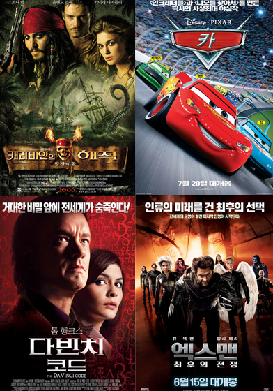 지난 3년여의 침체를 벗어나 할리우드 영화 시장이 활기를 찾은 것으로 미국의 일간지 'USA 투데이'가 29일(한국시간) 보도했다. 할리우드 영화 전문가들은 2006년 극장 입장료 수입이 꾸준히 증가하는 추세를 보였고 3편의 인기 블록버스터 시리즈물이 연달아 개봉할 2007년 5월에는 역대 수익 기록을 깰 것으로 기대하고 있다. 올 해 할리우드 메이저 스튜디오 중에서는 소니가 가장 뛰어난 성적을 올렸다. 박스오피스 1위 영화를 13개나 냈고 입장료 수입만 16억 달러에 달했다. 닐슨 EDI 조사에 따르면 할리우드 전체로는 모두 88억 달러 수입으로 지난해보다 3% 증가했다. 무엇보다 고무적인 사실은 입장 관객수의 현저한 증가다. 2002년 이후 계속 감소하던 관객수는 2005년 최근 8년동안 가장 낮은 수치를 기록할 정도로 줄었다. 올해는 입장료가(평균 6달러 58센트)가 올랐음에도 지난해보다 900만명이나 많은 관객이 입장한 것으로 집계됐다. 흥행 1위는 조니 뎁의 '캐리비안의 해적2; 망자의 함'으로 4억2330만 달러를 벌어들여 제작사 디즈니에게 엄청난 수익을 안겼다. 블록버스터 시리즈물인 이 영화는 올 해 개봉한 할리우드 영화 가운데 유일하게 300만 달러를 넘는 등 다른 작품들에 비해 압도적인 흥행 실적을 기록했다. 주연을 맡은 조니 뎁도 IMDB 등이 선정한 2006년 할리우드 톱스타 1위에 오르는 영예를 안았다. 2위는 애니메이션 '카'로 2억4410만 달러, 3위 'X맨 3' 2억3440만 달러, 4위 '다빈치 코드' 2억1750만 달러, 5위 '수퍼맨 리턴즈' 2억 달러, 6위 '아이스 에이지; 멜트 다운' 1억9530만 달러, 7위 '해피 피트' 1억6050만 달러, 8위 '오버 더 헷지' 1억550만 달러, 9위 '탈라데가 나이츠; 발라드 오브 리키 보비' 1억4820만 달러, 10위 '007 카지노 로얄' 1억450만 달러의 순서다. 올 해 박스오피스 수입 톱 10 영화에는 애니메이션이 '카' '아이스 에이지; 멜트 다운' '해피 피트' '오버 더 헷지' 등 4편이나 들어있어 당분간 메이저 스튜디오들의 만화 영화 제작 붐이 이어질 전망이다. mcgwire@osen.co.kr