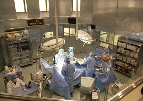 한국 최초의 초대형 메디컬 드라마인 MBC '하얀거탑'이 1,200평 규모의 병원 세트장 내부 모습을 공개했다. 12월 27일 경기도 이천에서 있었던 '하얀거탑' 현장 공개에 참석한 취재진들은 1,200평 규모의 초대형 세트장과 함께 실물과 다름 없는 병원 내부 모습의 디테일함에 탄성을 금치 못했다. 드라마 '궁'의 한국 황실 인테리어를 창조해낸 바 있고 현재 드라마 '태왕사신기'의 미술도 함께 맡고 있는 ㈜비쥬얼스토리공장에서 제작한 이번 세트장은 약 15억 원을 들여 6개월에 걸쳐 만든 초대형 규모이다. 이 때문에 드라마 '하얀거탑'의 주요무대인 ‘명인대학병원’의 모습은 최첨단 대학병원의 실제 모습과 비교해 조금도 뒤지지 않을 만큼 첨단 세트장의 구색을 갖췄다. 국내 병원에서도 보기 힘든 참관실을 갖춘 수술실만해도 두 곳이며 각 담당의들의 연구실과 집무실, 그리고 1인, 2인, 4인의 병실과 중환자실, 린넨실(병원의 침구 및 세탁물 보관실)에 이르기까지 병원 하나를 통째로 옮겨 놓았다고 해도 과언이 아니다. 더구나 국내 대학병원 교수들의 감수와 드라마에 직접 출연하게 될 현직 수술실 담당 간호사들이 소품 하나하나의 위치까지 섬세하게 신경쓰며 치밀하게 준비해놓았다. 이와 관련해 연출을 맡은 안판석 PD는 "간단한 맹장 수술은 할 수 있을 정도의 시설이 갖추어져 있다"는 농담섞인 말로 세트장에 대한 자부심을 드러내기도 했다. 이날 공개된 세트장에서는 곧 촬영에 들어갈 수술장면을 위한 준비가 한창이었는데 실제 사람과 흡사한 환자 모습의 더미는 2,500만원 상당의 거액을 들여 의학용에 맞게 특별 제작됐다. 암 환자의 경우 암 부위까지 세세하게 특별 제작됐으며 병명에 따라 더미의 종류도 다양해 극중에서 천재 외과의로 뛰어난 수술 솜씨를 선보이게 될 김명민(장준혁)에게서는 없어서는 안 될 중요한 파트너로 사용될 예정이다. 야망에 가득찬 천재 외과의사 장준혁과 환자의 입장에서 의술을 펼치는 최도영을 중심으로 병원이라는 작은 사회 안에서 펼쳐지는 인간 군상의 적나라한 모습을 그릴 '하얀거탑'은 병원내의 치열한 생존 경쟁을 긴박한 수술실을 보듯 박진감 있게 그려 깊이 있고 전문성을 갖춘 새로운 메디컬 드라마로 거듭나겠다는 각오를 밝히고 있으며 내년 1월 6일 MBC를 통해 첫 방송된다. hellow0827@osen.co.kr '하얀거탑' 수술실 세트장의 모습/ 영화사 숲 제공.