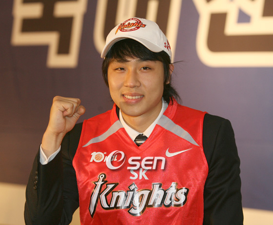 "강동희(원주 동부 코치)와 김승현(대구 오리온스) 선배의 장점만을 모은 가드가 되겠습니다". 2007 국내 신인선수 드래프트 1라운드 1순위로 서울 SK의 유니폼을 입은 연세대 출신 대표팀 가드 김태술이 팀의 리딩 가드로서 승리를 이끌어낼 수 있는 선수가 되겠다는 당찬 각오를 밝혔다. 김태술은 1일 서울 양재동 교육문화회관에서 열린 드래프트에서 1순위에 뽑힌 소감에 대해 "1순위로 뽑힐 것이라고 생각도 하지 못했다"며 "최고의 구단에서 뽑아줘 감사하며 앞으로 더 열심히 해 더 좋은 모습을 보여줄 수 있도록 노력하겠다"고 소감을 전했다. 이어 김태술은 "예전부터 강동희, 김승현 선배를 존경했고 본받고 싶었다"며 "강동희 선배는 느린듯 하면서도 패스가 들어가야할 곳에 기가 막히게 들어가고 김승현 선배는 다이내믹하면서도 화려한 플레이를 하는 장점이 있다. 그 장점만을 갖고 있는 가드가 되겠다"고 말했다. 또 SK의 새로운 가드로서 활약하게 될 김태술은 "가드의 역할은 팀을 이끄는 것이고 SK에 있는 선배들을 잘 이끌어 팀을 승리로 견인할 수 있는 선수가 되겠다"며 "프로 선수가 되기 위해 학창시절 10년동안 열심히 해왔고 이제 초심으로 돌아가 좋은 모습을 보여주겠다"고 밝혔다. 한편 김태술을 뽑은 강양택 SK 감독대행은 "1순위를 지명한 팀이 김태술을 뽑을 것이라고 예상해 제발 1순위가 되게 해달라고 드래프트 전날 김태술의 유니폼을 직접 만들어 베고 잔 정성이 통한 것 같다"며 웃은 뒤 "임재현이 올시즌을 끝으로 자유계약선수(FA)가 되지만 일단 구단에서는 반드시 잡는다는 방침이다. 내년 시즌에도 임재현이 팀에 잔류할 경우 김태술과 임재현이 1번과 2번을 맡는 '투 가드 시스템'이 정착될 것"이라고 말했다. tankpark@osen.co.kr '2007 KBL 국내선수 드래프트'가 1일 오후 양재동 교육문화회관에서 열렸다. SK 나이츠에 1순위로 지명된 S김태술이 포토타임을 갖고 있다./교육문화=김영민 기자ajyoung@osen.co.kr