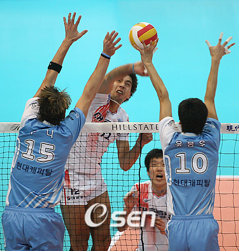 인천 대한항공이 3세트 연속 듀스 접전 끝에 천안 현대캐피탈을 셧아웃시켰다. 대한항공은 4일 천안 유관순체육관에서 열린 힐스테이트 2006~2007 V리그 남자부 경기에서 브라질 용병 보비(24득점, 3블로킹, 8디그)와 강동진(19득점, 13디그), 신영수(18득점, 2블로킹, 3디그)의 활약으로 숀 루니(17득점, 3블로킹, 7디그)가 버틴 홈팀 현대캐피탈에 3-0(27-25 30-28 31-29)으로 승리했다. 이로써 11승 6패가 된 대한항공은 12승 5패인 2위 현대캐피탈을 승점 1 차이로 따라붙으며 2위 재탈환에 청신호를 켰다. 반면 현대캐피탈은 16승 1패가 된 삼성화재와의 승점차가 4로 벌어지면서 2년연속 정규리그 우승이 사실상 어려워졌다. 1세트 14-18로 뒤진 상황에서 상대 권영민(3득점, 5디그)의 서브 실책와 함께 김영래(2득점, 6디그)의 스파이크 서브, 보비의 C속공, 신영수의 오픈 공격으로 18-18 동점을 만든 대한항공은 상대 송인석(12득점, 5디그)의 시간차공격을 신영수가 블로킹으로 막아내며 19-18 역전에 성공하는 뒷심을 보였다. 23-23 동점에서 루니에게 오픈 공격을 허용해 세트 포인트 위기를 맞았지만 보비의 백어택 공격 성공으로 듀스를 만든 대한항공은 25-25 동점에서 신영수의 오픈 공격과 보비의 백어택으로 1세트를 가져왔다. 상승세를 타기 시작한 대한항공은 2세트에서도 21-17까지 앞섰지만 홈에서 어이없이 패배당하지 않겠다는 현대캐피탈의 분전으로 추격을 당했고 24-22로 두번째 세트를 가져올 수 있는 상황에서 송인석에게 시간차 공격을 허용한 뒤 보비의 백어택이 이선규의 블로킹에 막히며 두번째 세트도 듀스로 넘어갔다. 그러나 대한항공은 28-28 동점에서 상대 송인석의 두차례에 걸친 오픈 공격이 모두 바깥으로 나가는 행운으로 세트 스코어 2-0으로 앞서갔다. 세번째 세트도 듀스였다. 대한항공은 22-24로 세트를 내줄 수 있는 상황에서 박철우(1득점)의 백어택 공격이 바깥으로 나간데 이어 송인석의 C속공을 이영택(5득점, 3블로킹, 2디그)이 블로킹으로 막아내며 듀스를 만든 것. 프로 출범 후 처음으로 3세트 연속 듀스 접전을 만든 상황에서 대한항공은 29-29 동점에서 박철우의 스파이크 서브 실패로 매치 포인트를 만든 뒤 보비의 회심의 스파이크 서브를 상대 송인석이 리시브하지 못하며 경기를 끝냈다. 한편 선두 삼성화재는 브라질 용병 레안드로 아라우조 다 실바를 쉬게 하고 장병철(16득점, 2블로킹, 5디그), 이형두(9득점), 조승목(8득점, 5블로킹, 4디그), 고희진(7득점, 4블로킹) 등을 앞세워 한국전력을 61분만에 3-0(25-16 25-15 25-15)으로 셧아웃시켰다. 또 구미 LIG 역시 이경수(17득점, 3블로킹, 5디그)와 프레디 윈터스(15득점, 2블로킹, 4디그)를 앞세운 월등한 전력을 뽐내며 3-0(25-22 25-17 25-18)으로 완승, 상무를 17연패에 빠뜨렸다. 여자부에서는 선두 천안 흥국생명이 인천 GS칼텍스와의 홈경기에서 첫 세트를 듀스 접전 끝에 내줬지만 이후 내리 2, 3, 4세트를 따내며 3-1(25-27 25-23 25-18 25-21)로 승리했고 수원 현대건설은 대전 원정경기에서 최하위 대전 KT&G를 3-0(25-19 25-19 25-17)로 셧아웃시켰다. ■ 4일 전적 △ 천안(남자부) 천안 현대캐피탈 0 (25-27 28-30 29-31) 3 인천 대한항공 △ 천안(여자부) 천안 흥국생명 3 (25-27 25-23 25-18 25-21) 1 인천 GS칼텍스 △ 대전(남자부) 대전 삼성화재 3 (25-16 25-15 25-15) 0 한국전력 △ 대전(여자부) 대전 KT&G 0 (19-25 19-25 17-25) 3 수원 현대건설 △ 구미(남자부) 구미 LIG 3 (25-22 25-17 25-18) 0 상무 tankpark@osen.co.kr