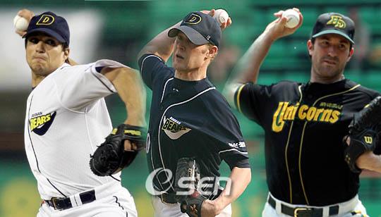 한국 프로야구에서 용병은 '캐스팅 보트'로 작용한다. 용병을 잘 뽑는다고 꼭 우승하는 것은 아니지만 용병 농사 망치고 우승한 사례는 거의 없다. 두산이 박명환(LG행)을 잃었음에도 동요하지 않는 배경에는 다니엘 리오스-맷 랜들이란 검증된 원투펀치를 보유하고 있어서이기도 하다. 이 둘과 더불어 '컷 패스트볼의 달인' 미키 캘러웨이(현대)는 '용병 투수 빅3'라 부를 만하다. 지난해까지 '4강'을 형성하던 세스 그레이싱어(전 KIA)는 잔류 제의를 뿌리치고 일본 야쿠르트로 이적했다. 그러나 올 시즌에도 용병 투수 '지존'이 기존의 '빅3'에서 나올지는 예측불허다. 특히 '코나미컵 스타' 케니 레이번(당시 대만 라뉴)은 벌써부터 SK 개막 선발로 지목될 만큼 강력한 도전자다. 또 용병 투수 잘 뽑기로 소문난 KIA가 낙점한 세스 에서튼도 주목할 가치가 있다. 하리칼라(LG행)를 버리고 삼성이 선택한 크리스 윌슨도 다크호스다. 이밖에 마이크 로마노(SK)와 세드릭 바워스(한화)도 뉴 페이스로서 새롭게 선을 보이는 투수다. 지난 시즌 투구이닝 톱11 중 용병 투수가 5자리를 차지했다. 특히 톱5 중 3석이 용병(리오스-랜들-그레이싱어)이었다. 현 구도에서는 개막전부터 삼성 두산 SK 현대 LG 5개 구단이 용병 선발을 내놓을 가능성이 농후하다. sgoi@osen.co.kr 리오스-랜들-캘러웨이.