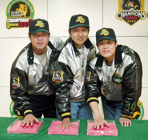 현대의 '18승 삼총사'가 재기의 날갯짓을 하고 있다. 김재박 감독의 용병술, 프런트의 막강한 자금력을 앞세워 창단 5년 만에 두 번째 한국시리즈 왕좌에 등극한 2000년. 현대는 다승왕을 3명이나 배출했다. 정민태(37) 임선동(34) 김수경(28)이 18승으로 다승 공동 1위를 차지했다. 18승 삼총사의 탄생은 공룡구단 현대의 하늘을 찌르는 위세를 극명하게 보여준 것이었다. 당시만 해도 이들 삼총사는 현대의 '현재와 미래'였지만 불과 7년 만에 모든 게 달라졌다. 구단은 모그룹이 흔들리며 위기에 빠지더니 그동안 도움을 주었던 범현대가의 지원 중단 조치로 존폐 위기에 몰려있다. 18승 삼총사들도 부침을 겪더니 부상으로 이젠 주전선수 축에도 끼지 못하는 신세가 됐다. 정민태는 현대의 에이스에 걸맞지 않게 지난 2년 동안 승리와 연을 맺지 못했다. 임선동도 2003년부터 무려 4년간 0승의 행진을 계속했다. 10승은 기본이었던 김수경도 2005년부터 2년 동안 올린 승수는 고작 11승에 불과했다. 다들 어깨 또는 팔꿈치 부상으로 병동에 입원해 있었다. 그런데 공교롭게도 '18승 삼총사'가 구단의 위기 속에 서서히 기지개를 켜고 있다. 플로리다 캠프에서 재기 조짐을 보이고 있다. 모두 싱싱한 피칭을 과시하며 김시진 감독의 얼굴을 밝게 해주고 있다. 투수조련의 대가인 김시진 감독은 "올해는 이들이 마운드에서 한 몫 해줄 것 같다"고 말하고 있다. 더욱이 다들 올 시즌을 앞두고 배수진을 쳤다. 정민태와 임선동은 은퇴를 걸고 훈련에 나서고 있고 김수경은 '1+2년'짜리 FA 계약을 맺어 올해 성적이 중요하다. 비록 7년 전 18승은 아니겠지만 나란히 재기에 성공하는 드라마를 준비하고 있는 셈이다. 구단의 고난속에서 '18승 삼총사' 재림이 성사될지 지켜보자. sunny@osen.co.kr 지난해 4월 임선동 정민태 김수경(왼쪽부터)이 2000년 시드니올림픽 동메달 기념 핸드프린팅 행사에서 나란히 포즈를 취한 모습=현대 유니콘스 제공.