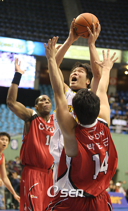 서울 삼성이 '토종 트리오'의 활약을 앞세워 올 시즌 단 한 번도 이겨보지 못했던 창원 LG를 꺾고 3위 싸움에 불을 지폈다. 삼성은 16일 서울 잠실체육관에서 열린 2006~2007 현대모비스 프로농구 홈경기에서 서장훈(20득점, 3점슛 2개, 6리바운드, 4어시스트) 강혁(15득점, 10어시스트, 3스틸) 이규섭(13득점, 3점슛 2개, 3리바운드)이 48점을 합작하는 활약으로 현주엽이 무릎 연골 부상으로 빠진 LG를 91-73으로 여유있게 물리쳤다. 올시즌 4번 맞붙어 모두 졌던 LG를 상대로 처음 승리를 거둔 삼성은 최근 4연승으로 22승 19패가 되며 22승 18패가 된 3위 LG를 반경기차로 추격했고 승차없이 승률차로 5위인 오리온스와의 승차는 반경기로 넓혔다. LG로서는 현주엽이 오는 24일 대구 오리온스와의 경기에서나 나올 전망인 데다 하루 걸러 펼쳐지는 설날 연휴 3연전의 첫 경기였고 삼성으로서도 중상위권 순위 경쟁에서 뒤처지지 않기 위해 반드시 LG를 잡아야만 했던 처지여서 양팀에 중요한 한 판이었다 1쿼터를 24-17로 앞섰던 삼성은 2쿼터 한때 29-28, 1점차까지 추격당했으나 2쿼터 후반 삼성의 득점포가 집중되며 점수가 벌어지기 시작했다. 35-32 상황에서 올루미데 오예데지(12득점, 18리바운드, 3블록)의 2점슛을 시작으로 서장훈과 이규섭의 연속 득점으로 41-32까지 달아난 삼성은 1, 2쿼터 전반을 41-35로 마쳤고 3쿼터 시작과 함께 오예데지의 2점슛과 이규섭의 2점슛에 이은 3점슛이 연달아 터지며 48-35로 달아나며 분위기를 잡았다. 3쿼터 한때 서장훈의 연속 2점슛에 60-45, 15점차까지 점수를 벌렸던 삼성은 4쿼터 65-54 상황에서 이원수(8득점, 3점슛 2개, 4어시스트, 3스틸)와 서장훈의 연속 3점포가 작렬하며 71-54까지 달아났고 경기 종료 5분전 강혁의 어시스트에 이은 네이트 존슨(18득점, 5리바운드, 4어시스트)의 앨리웁 덩크로 77-56, 21점차로 점수를 벌리며 손쉽게 승리를 챙겼다. 반면 찰스 민렌드(25득점, 3점슛 3개, 9리바운드, 5어시스트)와 박지현(18득점, 3점슛 2개, 3스틸)의 외곽포로 맞선 LG는 3쿼터까지 51-60, 9점차로 뒤져 역전의 기회가 있었지만 56-72 상황이던 4쿼터 4분 18초 퍼비스 파스코(7득점, 11리바운드, 2스틸)가 연속 테크니컬 파울 2개로 퇴장당해 높이가 현저하게 낮아지며 주저 앉았다. ■ 16일 전적 △ 잠실 서울 삼성 91 (24-17 17-18 19-16 31-22) 73 창원 LG ▲ 삼성 = 서장훈(20득점, 3점슛 2개, 6리바운드, 4어시스트) 네이트 존슨(18득점, 5리바운드, 4어시스트) 강혁(15득점, 10어시스트, 3스틸) 이규섭(13득점, 3점슛 2개, 3리바운드) 올루미데 오예데지(12득점, 18리바운드, 3블록) 이원수(8득점, 3점슛 2개, 4어시스트, 3스틸) ▲ LG = 찰스 민렌드(25득점, 3점슛 3개, 9리바운드, 5어시스트) 박지현(18득점, 3점슛 2개, 3스틸) 조상현(9득점, 2스틸) 퍼비스 파스코(7득점, 11리바운드, 2스틸) 박규현(6득점, 2스틸) 이현민(4득점, 3어시스트) tankpark@osen.co.kr 삼성의 서장훈이 LG 박훈근의 블로킹 위에서 골밑슛을 쏘고 있다./잠실체=김영민 기자ajyoung@osen.co.kr