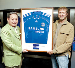 수 년 전 한국 프로야구 구단 홍보 관계자들은 대만 프로야구를 견학하러 갔다가 깜짝 놀란 일이 있었다. 대만 프로 선수들의 유니폼에 부착된 각종 광고 문구를 보고 눈이 휘둥그래진 것이다. 당시 대만을 다녀온 홍보 관계자는 “대만 프로야구가 우리보다 늦게 시작했지만 마케팅에서는 한 수 앞서나가고 있음을 확인했다. 그들의 기발한 수익 활동에 놀랐다”고 밝혔다. 수입 증대를 위해 활발하게 마케팅 활동을 펼치는 것은 ‘프로야구 원조’인 미국 메이저리그도 마찬가지다. 비근한 예가 지난 16일 일본인 투수 마쓰자카의 보스턴 레드삭스 스프링캠프 입소 기자회견이다. 보스턴은 신인 투수 최고 몸값(1억 311만 달러)을 주고 영입한 마쓰자카의 특별 인터뷰를 하면서 배경판으로 일본 한 전자회사의 로고를 넣은 배너를 걸어 광고효과를 노렸다. 이처럼 대만, 미국 등 각국 프로야구에서는 갖가지 아이디어로 마케팅을 펼치며 수익 증대를 노리고 있는 것이다. 관중 감소, 선수 몸값 상승 등으로 적자폭이 점점 커지고 있는 한국 프로야구로서는 모두가 주목해야 할 마케팅 활동들이다. 이런 차원에서 한국야구위원회(KBO)는 규칙위원회를 통해 구단들의 마케팅 활동을 측면지원하는 방안을 강구하기 시작했다. KBO의 한 관계자는 “유니폼에 부착하는 기업명 광고를 더 늘리는 방안을 고려하고 있다. 이를 실천하기 위해 규칙위원회 논의를 걸쳐 총재의 최종 승인이 필요하다. 너무 요란스럽지 않으면서도 구단들이 실질적으로 수입을 늘릴 수 있는 방안을 마련할 방침”이라고 밝히고 있다. 현재로서는 가장 먼저 도입이 예상되는 방안이 유니폼 광고다. 지금은 유니폼 상의 한쪽 팔소매에 스폰서사 이름이나 로고를 붙이고 있는데 앞으로는 양쪽 팔소매에 부착하고 스폰서료를 더 받는 방안, 또 헬멧에 허용하고 있는 40cmx2cm 크기의 광고를 좀 더 늘리는 방안 등이 있을 수 있다. 여기에 유럽 축구에서 많이 활용하고 있는 유니폼 앞이나 뒤에 스폰서 업체명을 프린트해 다는 방안도 고려하고 있는 것으로 알려졌다. 영국 프로축구단인 첼시가 삼성전자와 스폰서 계약을 맺고 유니폼 상의 앞면에 ‘삼성 모바일’이라는 영문 광고 문구를 다는 것처럼 프로야구단 유니폼에 본격적인 광고를 허용하는 방안이다. 이를 위해서는 현행 한국 프로야구 경기 규칙 1.11조에는 유니폼에 대한 조항을 일부 개정해야 한다. 현재 (h)항에서는 유니폼의 어떤 부분에도 상업광고에 관련된 휘장이나 디자인을 붙여서는 안된다. 단 유니폼의 상의 소매 1개소에 한해 60㎤ 이내의 광고를 허용한다고 돼 있다. 또 (i)항에서는 리그는 소속한 팀의 유니폼 등에 선수의 이름을 붙이도록 규정할 수 있다. 선수 이름 밖의 다른 것을 붙일 경우에는 리그회장의 승인을 필요로 한다. 이름을 붙이도록 확정되면 팀 전원의 유니폼에 붙이지 않으면 안된다고 적시돼 있다. 따라서 한국 프로야구에서 ‘유니폼이 움직이는 광고판’으로 활용되기 위해서는 규칙의 개정과 총재의 승인이 선결돼야 한다. 다행히 KBO와 각구단이 수입 증대를 위해서는 어느 정도의 유니폼 및 장비의 스폰서 광고 허용이 요구된다는 점에 의견을 같이 하고 있어 조만간에 스폰서 광고 증대는 현실화될 가능성이 커지고 있다. 한국 프로야구에도 구단 명칭 대신 스폰서 이름이 새겨진 유니폼을 선수들이 입고 경기에 나설 날도 멀지 않아 보인다. 지난해 잉글랜드 프리미어리그 첼시 구단을 방문한 이건희 삼성 그룹 회장에게 로만 아브라모비치 구단주가 주장 존 테리의 사인이 담긴 유니폼을 선물하고 있다. 삼성은 2005년 5년 계약으로 첼시와 스폰서 계약을 맺었다. /삼성 그룹 제공. sun@osen.co.kr