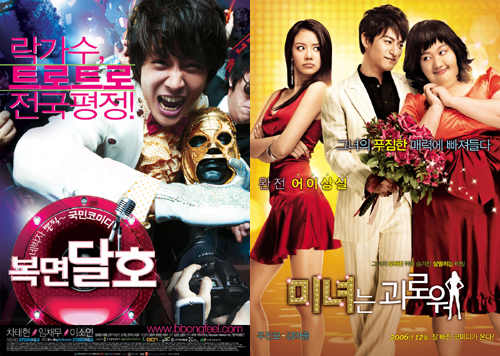 차태현 임채무 이소연 주연의 영화 ‘복면달호’(김상찬/김현수 감독, 스튜디오2.0/인앤인픽쳐스 제작) 설날 연휴 박스오피스 2위에 올랐다. 임창정 하지원 주연의 ‘1번가의 기적’에 뒤처지긴 했지만 수많은 경쟁작을 제치고 2위에 올랐다는 것은 나름의 성과를 거둔 것으로 받아들여진다. ‘복면달호’는 록 가수를 꿈꾸는 달호가 트로트 가수 봉필로 변신하는 과정을 담고 있다. 록 가수에서 트로트 가수로 변신하는 과정은 코믹한 요소와 함께 진정한 음악이 무엇인지에 대한 화두를 던진다. 중간 과정이 다소 미흡해보이지만 영화의 말미의 마무리는 깔끔하게 정리돼 있다. 봉필이 복면을 벗고 트로트 가수로 무대에 오르고 콘서트를 갖는 장면을 보고 있자면 왠지 뭉클한 느낌이 든다. 하지만 ‘복면달호’는 영화가 가지고 있는 힘에 비해 큰 위력을 발휘하지 못한 것으로 보인다. 설날 연휴를 포함한 개봉 첫 주말까지 동원한 관객수가 불과 35만 명(영진위 영화관입장권 통합전산망 기준) 수준이다. 뒷마무리가 깔끔한 ‘복면달호’가 부진한 이유는 무엇일까? 설날 연휴가 단 3일 뿐이라는 것도 한 이유겠지만 관객들을 끌어들이는 매력이 부족하다는 것이 가장 큰 이유다. 이는 지난 해 말부터 흥행돌풍을 일으키고 있는 ‘미녀는 괴로워’에서 기인한 것이다. ‘복면달호’와 ‘미녀는 괴로워’는 많은 점이 닮아있어 관객들에게 신선함을 주지 못한다는 말이다. 한 관객이 “‘1번가의 기적’은 무슨 내용일지 궁금하지만 ‘복면달호’는 너무 뻔한 내용 아니냐?”고 하는 말을 들으면 수긍할 만도 하다. ‘미녀는 괴로워’와 ‘복면달호’는 일본의 만화와 소설을 원작으로 하고 있고, 영화를 풀어내는 과정이 가수라는 점, 인기 가수가 되기까지 겪는 과정이 유사하다. 이는 ‘복면달호’의 김상찬 감독도 인정한 부분이다. 게다가 ‘미녀는 괴로워’의 흥행과 함께 영화 속에 삽입됐던 노래 ‘마리아’가 폭발적인 인기를 누린 것을 거울삼아 ‘복면달호’ 개봉 전 봉필의 대표곡 ‘이차선 다리’ 홍보에 주력했다. 그러나 ‘미녀는 괴로워’의 흥행성공이 결국 ‘복면달호’의 발목을 붙잡은 셈이 되고 말았다. pharos@osen.co.kr