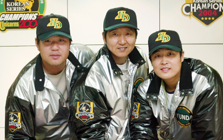 현대 유니콘스의 2000시즌 18승 삼총사 김수경 정민태 임선동이 오랜만에 이름값을 했다. 지난 19일(한국시간) 플로리다 브래든턴의 매켄니 구장에서 열린 에커드대학과의 연습경기에 선발 투수로 등판한 김수경은 3이닝 동안 11타자를 맞아 실점없이 2피안타, 5탈삼진으로 호투하며 닥터 K의 면모를 과시했다. 이어 등판한 정민태는 2이닝 동안 2피안타 3탈삼진 1실점을 기록, 되살아난 모습을 보여줬다. 또 임선동은 1이닝 동안 1피안타, 3탈삼진 무실점으로 잘 막아 올 시즌 부활을 예고했다. 공격에서는 1루수 겸 7번타자로 출장한 이숭용이 2타수 2안타 1득점으로 맹활약하며 팀 타선을 이끌었다. 이택근과 브룸바도 각각 1안타씩 기록했다. 이날 현대는 에커드대학을 2-1로 눌렀다. what@osen.co.kr 임선동-정민태-김수경.