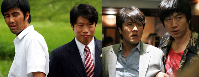같은 값이면 다홍치마다. 힘든 영화 촬영도 호흡 잘맞는 친구와 함께라면 흥이 나는 법. 최근들어 평소 절친했던 단짝끼리 같은 영화에 출연하는 사례가 잦아지고 있다. 올해에는 '이장과 군수'의 차승원 유해진, '쏜다'의 감우성 김수로 콤비가 한 솥밥을 먹는 중이다. 이들은 영화계에서 자타가 공인하는 단짝으로 꼽힌다. 먼저 차승원 유해진. 모델 출신의 늘씬한 꽃미남 차승원이 톱스타로 먼저 떳지만 개성파 유해진도 탄탄한 연기력을 기반으로 매니아 팬들을 늘려가고 있다. 인기가 많고 적고를 떠나서 두 배우는 기쁨과 고민을 함께 나누는 친구 사이로 지낸 지 오래다. 소속사도 같아서 동반 출격이 잦았다. 설경구 차승원이 사면을 앞두고 탈옥하는 엉뚱 범죄자들로 등장한 '광복절 특사'. 유해진은 설경구의 변심한 애인 송윤아와 결혼하려는 경찰관으로 출연했다. 차승원 주연, 유해진 조연의 등식이 확실했던 시절이다. 꽃무늬 셔츠 입은 칼잡이 등 개성 만점 단역을 주로 뛰던 유해진은 이 영화에서 조연급으로 한 계단 확실히 올라섰다. 지난해 차승원 주연 '국경의 남쪽'에서 처남 매부로 열연을 펼쳤던 두 사람은 올해 투톱으로 영화를 찍었다. 장규성 감독의 코미디 '이장과 군수'다. 어린 시절 반장을 도맡아 하던 시골 노총각 춘삼(차승원)과 만년 부반장 출신의 소꼽친구 대규(유해진), 이 둘이 어른이 돼 이장과 군수로 엇갈린 자리에 오르며 벌어지는 딴지 대결을 그렸다. MBC 오락프로 '차승원의 헬스클럽' 코너를 통해 차승원 유해진은 말 한마디를 주고 받을 때마다 폭소탄을 터뜨려 시청자들의 사랑을 받았다. 이번 공동 출연작은 주연 배우들 간의 호흡이 중요한 코미디 영화다. 단짝의 잇점을 살려 시너지 효과를 노리고 있다. 김수로 감우성 역시 단짝으로는 충무로에서 둘째가라면 서러울 사이다. 늦장가 드는 김수로의 신혼 여행에 감우성 부부가 함께 가는 것 아니냐는 얘기를 주고받을 정도로 가족간에도 화목하다. 2005년 '간 큰 가족'에서 실향민 아버지의 유산을 차지하려는 형제로 출연, 호평을 받은 바 있다. 올 3월 개봉할 박정우 감독의 코미디 '쏜다'에서는 차승원 유해진과 마찬가지로 아예 투톱 주연을 맡았다. 하루 아침에 인생 파탄을 겪게 된 모범 회사원 박만수(감우성). 백수에 대책없는 건달로 살면서도 효심이 지극한 양철곤(김수로). 두 사람이 우연한 기회로 경찰서에 수감되면서 벌어지는 한바탕 소동을 스크린에 담은 영화다. 실제 단짝 친구가 공동 주연으로 힘을 모은 영화 두편이 올 봄 극장가에서 어떤 돌풍을 일으킬 지 궁금하다. mcgwire@osen.co.kr 영화 '이장과 군수' '쏜다'의 스틸 사진(각 영화사 제공)