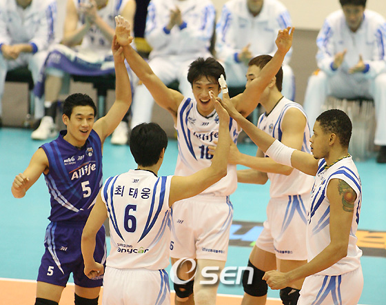 대전 삼성화재가 아마추어 초청팀 한국전력을 셧아웃시키고 19승째를 올렸다. 삼성화재는 22일 서울 올림픽공원 제2체육관에서 열린 힐스테이트 2006~2007 V리그 남자부 중립경기에서 블로킹과 서브 득점 3개씩과 백어택 7개로 트리플 크라운 기록을 세운 '브라질 괴물 용병' 레안드로 아라우조 다 실바(24득점, 2디그)의 활약으로 한국전력을 3-0(25-23 28-26 25-18)으로 꺾었다. 이로써 삼성화재는 19승 4패, 승점 19로 2위 천안 현대캐피탈과의 승점차를 1점으로 계속 유지하며 불안한 선두를 지켰다. 또 레안드로는 올시즌 트리플 크라운을 기록한 세번째 선수로 기록됐다. 삼성화재는 비롯 세트 스코어 3-0으로 승리했지만 3세트를 제외하고는 마음을 졸여야만 했다. 삼성화재는 1세트 22-23으로 뒤진 상황에서 레안드로의 백어택 공격 성공으로 동점을 만든 뒤 상대 강성민(6득점, 6디그)의 시간차 공격을 김정훈(8득점, 2블로킹, 4디그)이 블로킹으로 막아냈고 이어 정평호(10득점, 4디그)의 백어택 공격을 레안드로가 블로킹으로 막으며 25-23으로 승리했다. 2세트는 1세트보다 상황이 더 어려웠다. 22-24로 세트를 내줄 수 있는 상황에서 손재홍(3득점, 4디그)의 C속공으로 일단 한숨을 돌린 삼성화재는 레안드로의 백어택 성공으로 듀스를 만드는데 성공했다. 삼성화재는 결국 26-26 동점에서 상대 정평호의 백어택이 바깥으로 나간데 이어 강성민의 시간차 공격을 고희진(7득점, 7블로킹)이 블로킹으로 막아내며 두번째 세트까지 따냈다. 2세트를 듀스 끝에 따낸 것은 결국 분수령이 됐고 삼성화재는 3세트 15-13에서 레안드로의 백어택과 이형두(3득점)의 블로킹이 연속해서 나오며 17-13으로 달아난 뒤 21-18 상황에서 레안드로의 백어택과 고희진의 연속 2개 블로킹으로 매치 포인트를 만들었고 신진식(3득점)의 스파이크 서브가 득점으로 연결되며 경기를 마감했다. ■ 22일 전적 △ 서울 올림픽 (남자부) 대전 삼성화재 3 (25-23 28-26 25-18) 0 한국전력 ▲ 삼성화재 = 레안드로 아라우조 다 실바(24득점, 3블로킹, 2디그) 김정훈(8득점, 2블로킹, 4디그) 고희진(7득점, 7블로킹) 손재홍(3득점, 4디그) 최태웅(3득점, 3블로킹, 2디그) 신진식(3득점) 이형두(3득점) ▲ 한국전력 = 양성만(14득점, 2블로킹, 3디그) 정평호(10득점, 4디그) 이상현(7득점, 2블로킹, 2디그) 강성민(6득점, 6디그) 최귀동(6득점, 3디그) 김상기(2득점, 7디그) ■ 중간 순위 (22일 현재, 남자부) ① 대전 삼성화재 19승 4패 (승점 19) 1.143 / 3.000 ② 천안 현대캐피탈 18승 5패 (승점 18) 1.146 / 2.458 ③ 인천 대한항공 16승 7패 (승점 16) 1.040 / 1.588 ④ 구미 LIG 11승 12패 (승점 11) 1.037 / 1.051 ⑤ 한국전력 3승 20패 (승점 3) 0.852 / 0.246 ⑥ 상무 2승 21패 (승점 2) 0.796 / 0.172 tankpark@osen.co.kr