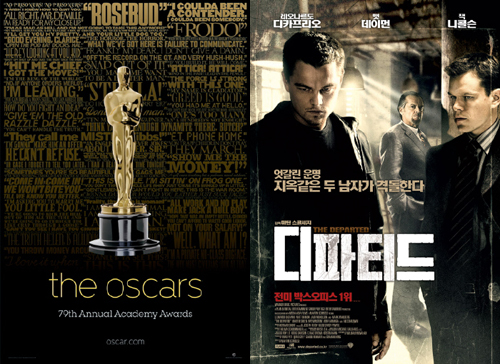 2월 25일(현지 시간) 미국 LA 할리우드 코닥극장에서 전 세계가 주목하는 79회 아카데미 시상식이 열렸다. 이날 시상식의 주인공은 단연 ‘디파티드’였다. 레오나르도 디카프리오, 맷 데이먼, 잭 니콜슨 주연의 ‘디파티드’는 작품상과 감독상을 비롯해 각색상, 편집상 등 4관왕을 차지했다. 특히 ‘성난 황소’ ‘그리스도의 마지막 유혹’ ‘굿 펠라스’ ‘순수의 시대’ ‘갱스 오브 뉴욕’ ‘애비에이터’ 등 아카데미 시상식에 총 6번 노미네이트 됐지만 단 한번도 수상하지 못했던 거장 마틴 스콜세지 감독이 ‘무관의 제왕’이라는 불명예를 씻었다. 그러나 무엇보다 더 관심을 끄는 것은 ‘디파티드’가 홍콩영화 ‘무간도’를 리메이크한 작품이라는 점이다. 최근 할리우드가 극심한 소재 빈곤 상태인 가운데 ‘디파티드’가 아카데미 시상식에서 최고의 작품상을 수상함으로써 홍콩을 비롯한 아시아 영화의 저력을 입증한 셈이기 때문이다. 게다가 미국 영화시장이 외국어 영화에 대해 인색하다는 평가를 받는 가운데 ‘디파티드’의 수상이 아시아 영화를 주목하게 되는 계기가 될 가능성도 커졌다. pharos@osen.co.kr