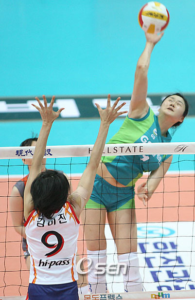 인천 GS칼텍스가 대전 KT&G를 꺾고 9연패 사슬을 끊었다. GS칼텍스는 26일 서울 올림픽 제2체육관에서 계속된 힐스테이트 2006~2007 V리그 여자부 중립경기에서 김민지(26득점, 17디그)와 안드레이아 코지 스폴진(24득점, 4블로킹, 15디그)의 활약으로 하켈리 레날뜨빅스(28득점, 22디그)가 분전한 KT&G에 3-1(25-17 25-16 22-25 30-28)로 승리했다. 이로써 9연패 끝에 승리를 거둔 GS칼텍스는 6승 14패, 승점 6을 기록하며 최하위 KT&G와의 승점차를 3으로 벌리며 남은 5경기 가운데 3승만 거둬도 자력으로 4위를 확정짓게 됐다. 그러나 KT&G가 천안 흥국생명, 구미 한국도로공사, 수원 현대건설 등 '3강'을 꺾을 가능성이 거의 없기 때문에 사실상 GS칼텍스는 4위를 확정지었다. 1세트 나혜원(15득점, 2블로킹, 12디그)의 6득점과 김민지, 안드레이아의 5득점으로 KT&G를 17점으로 묶으며 첫세트를 따낸 GS칼텍스는 2세트에도 24-16에서 상대 이효희(1득점, 11디그)의 서브가 네트에 걸리면서 세트 스코어 2-0으로 앞서갔다. 그러나 GS칼텍스는 쉽게 이길 수 있는 경기를 어렵게 끌고 갔다. 3세트에서 20-15까지 앞서고도 하켈리의 오픈에 이은 서브 득점, 김세영(14득점, 2블로킹, 5디그)의 시간차를 잇따라 내주며 2점차로 추격당했고 22-19에서 하켈리에게 2점짜리 백어택, 한은지(9득점, 14디그)에게 연속 2개의 오픈 공격을 허용하며 22-23으로 역전당하고 말았다. 결국 기세가 오른 KT&G에게 밀린 GS칼텍스는 김민지의 백어택 아웃과 나혜원의 네트 터치로 3세트를 내주고 말았다. 그러나 GS칼텍스는 4세트에서 비슷한 모습으로 KT&G에게 설욕했다. 19-22로 뒤진 상황에서 김민지의 백어택과 나혜원의 시간차로 22-22 동점을 만든 GS칼텍스는 듀스 접전으로 끌고 갔고 27-28로 뒤진 상황에서 안드레이아의 시간차 공격과 서브 득점으로 매치 포인트를 만든 뒤 나혜원의 오픈 공격이 코트에 꽂히며 경기를 끝냈다. ■ 26일 전적 △ 서울 올림픽 (여자부) 인천 GS칼텍스 3 (25-17 25-16 22-25 30-28) 1 대전 KT&G ▲ GS칼텍스 = 김민지(26득점, 17디그) 안드레이아 코지 스폴진(24득점, 4블로킹, 15디그) 나혜원(15득점, 2블로킹, 12디그) 이정옥(9득점, 16디그) 정지윤(6득점, 2블로킹, 11디그) 곽소희(3득점, 3블로킹, 3디그) ▲ KT&G = 하켈리 레날뜨빅스(28득점, 22디그) 김세영(14득점, 2블로킹, 5디그) 한은지(9득점, 14디그) 임명옥(8득점, 20디그) 지정희(6득점, 5디그) 박경낭(3득점, 3디그) 이효희(1득점, 11디그) ■ 중간 순위 (26일 현재, 여자부) ① 천안 흥국생명 17승 3패 (승점 17) 1.113 / 2.154 ② 구미 한국도로공사 13승 7패 (승점 13) 1.063 / 1.424 ③ 수원 현대건설 11승 9패 (승점 11) 1.039 / 1.189 ④ 인천 GS칼텍스 6승 14패 (승점 6) 0.930 / 0.630 ⑤ 대전 KT&G 3승 17패 (승점 3) 0.867 / 0.382 ※ 승점 옆 숫자는 점수득실률 / 세트득실률. tankpark@osen.co.kr 김민지.